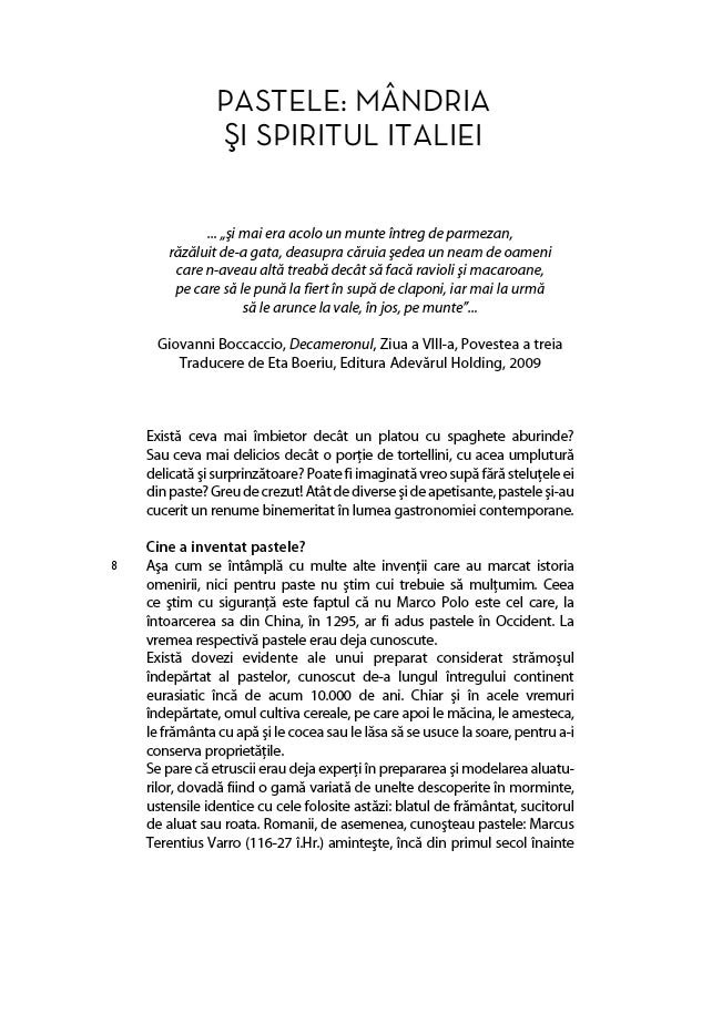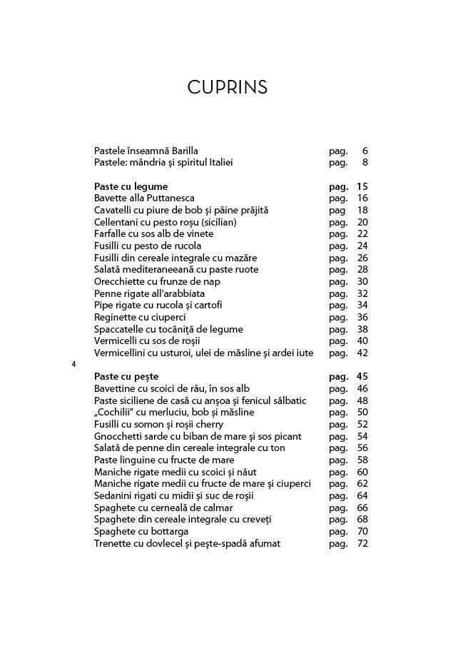 Pastele - mandria si spiritul Italiei! Aceasta carte le propune cititorilor cele mai cunoscute 50 de retete traditionale cu paste, asa cum sunt ele recomandate de compania Barilla, peste tot in lume.