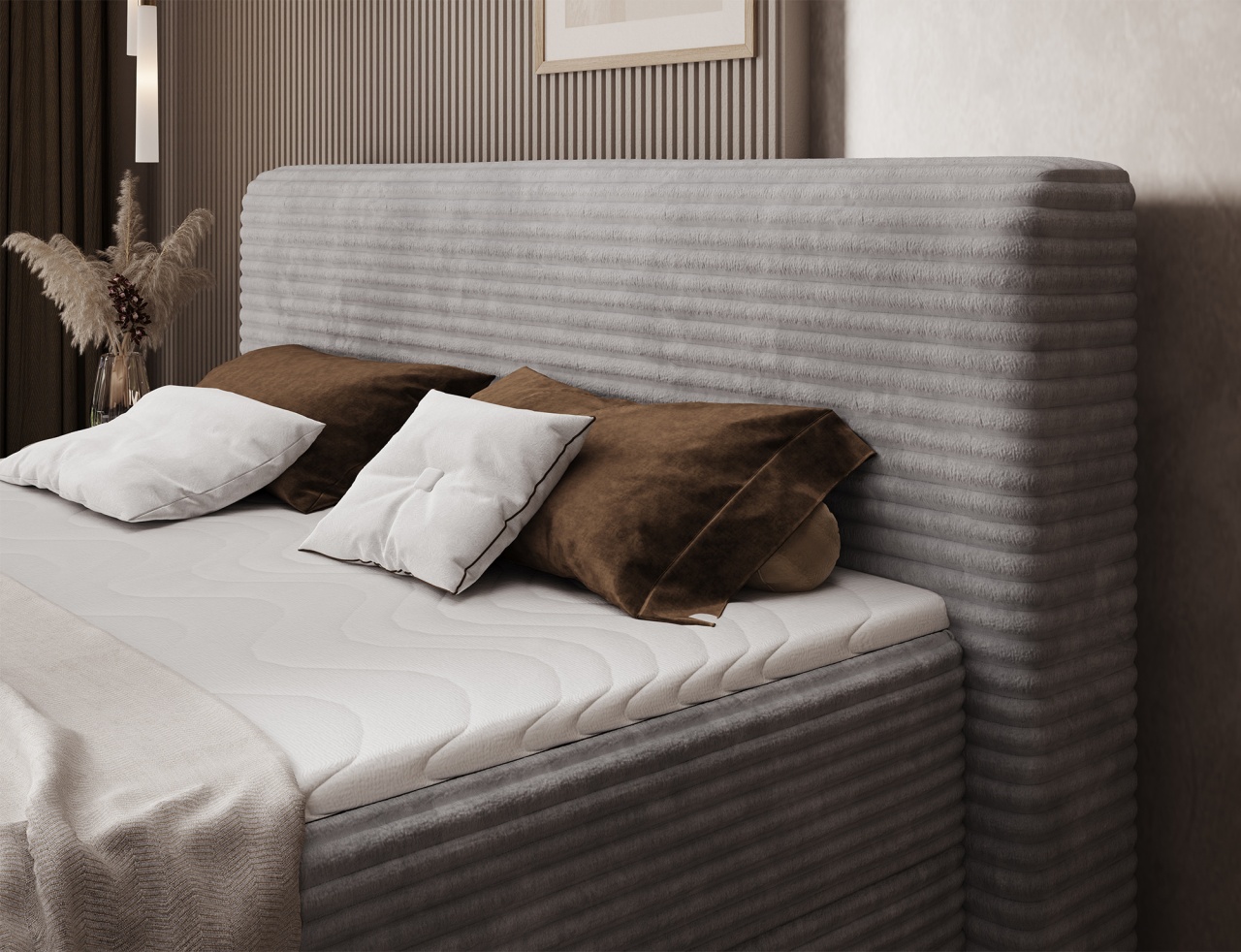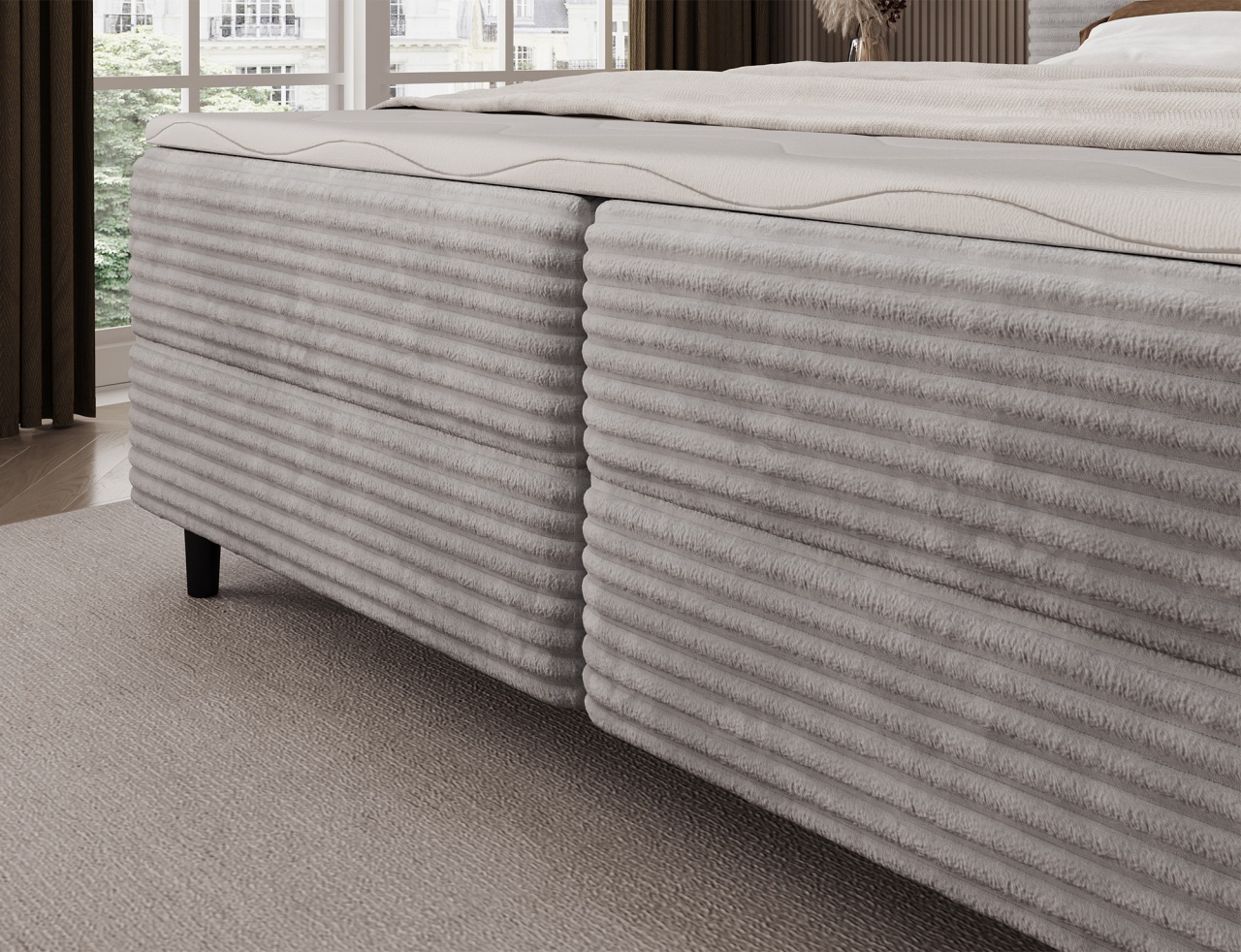 Patul continental Cortiko este o alegere elegantă și confortabilă pentru iubitorii stilului modern. Disponibil în trei variante de dimensiuni: 140x200 cm, 160x200 cm și 180x200 cm. Înălțimea totală a patului este de 102 cm, iar adâncimea de 222 cm, oferind o structură stabilă și echilibrată. Combinația dintre arcurile Bonell și spuma T2540 asigură un suport excelent pentru corp și un confort ridicat în timpul somnului. Modelul Cortiko este echipat cu un compartiment practic pentru depozitarea lenjeriei, care ajută la menținerea ordinii și la utilizarea eficientă a spațiului din dormitor. Picioarele negre din lemn completează designul, adăugând eleganță și lejeritate. Cu un design modern, patul Cortiko se potrivește perfect atât în interioare minimaliste, cât și în amenajări mai expresive, devenind un element stilat și funcțional al oricărui dormitor. Dimensiuni: Lățime: 162 cm Lungime: 222 cm Înălțime: 102 cm Înălțime șezut: 56 cm Suprafață dormit: 140x200 cm Înălțime picioare: 10 cm Recipient depozitare lenjerie de pat: 2x 182x66x15 cm Spătar tapițat: nu Capacitate ridicare: 220 kg Produsul nu este montat, montarea este rapidă și ușoară. Produsul este personalizabil, culoarea și materialul se aleg pe baza paletarelor la cererea clientului. Prețul poate suferi modificări în funcție de grupa de material aleasă.