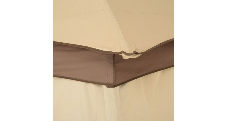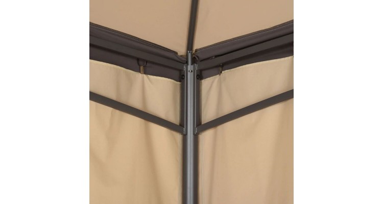 Pavilion Herald Serviti masa in natura, fiind totodata protejati de razele puternice ale soarelui sau de adierile vantului. Pavilionul din gama Herald este alegere perfecta pentru a completa amenajarea din mediul exterior. Asezati o masuta cu scaune sau canapea, iar zilele petrecute in aer liber, alaturi de cei dragi, vor fi momentele voastre preferate. Acesta este confectionat din structura de otel vopsita in camp electrostatic, iar perdelele si copertina realizate din poliester cu protectie impotriva umezelii si razelor UV. Dimensiuni: L. 295 x l. 360 x H. 265 cm. Material: otel, poliester. Culoare: bej.