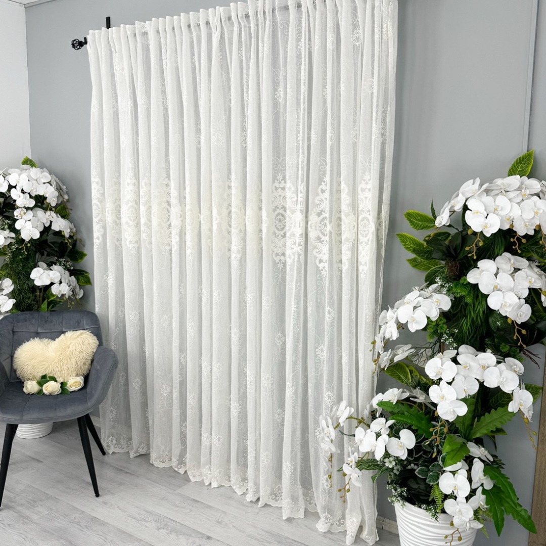 Perdea Cristina tip IN Brodat, Ivoire, 140cm latime x 260cm inaltime, cu rejansa pt bara