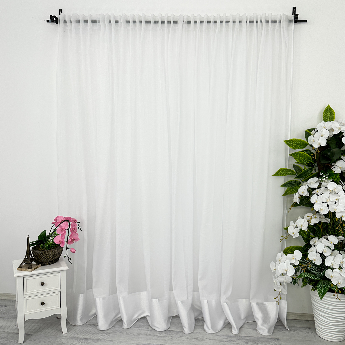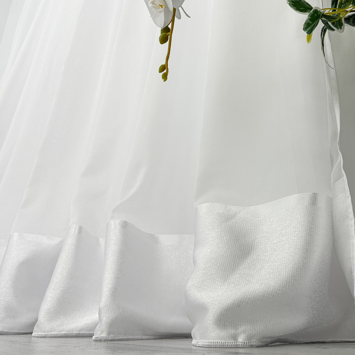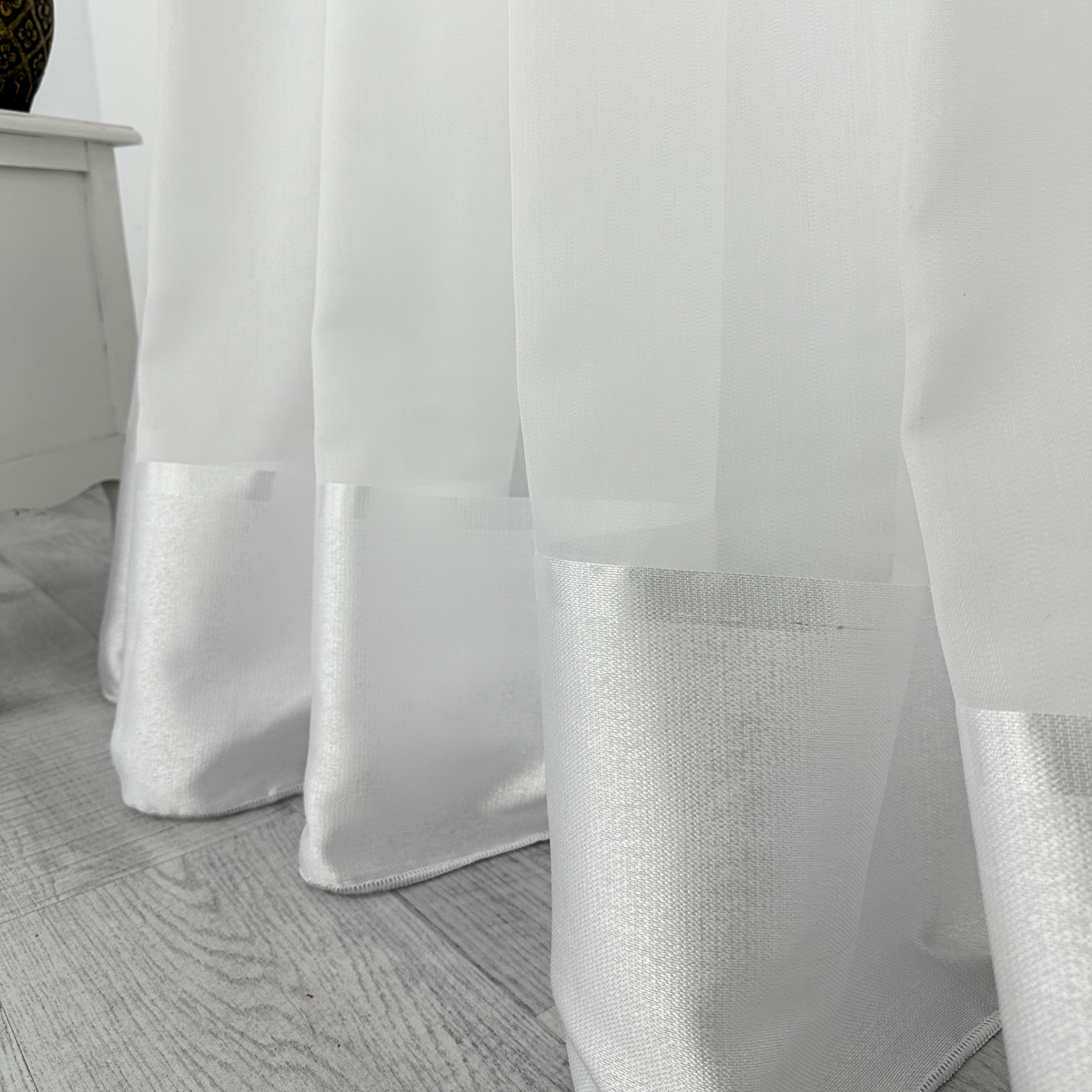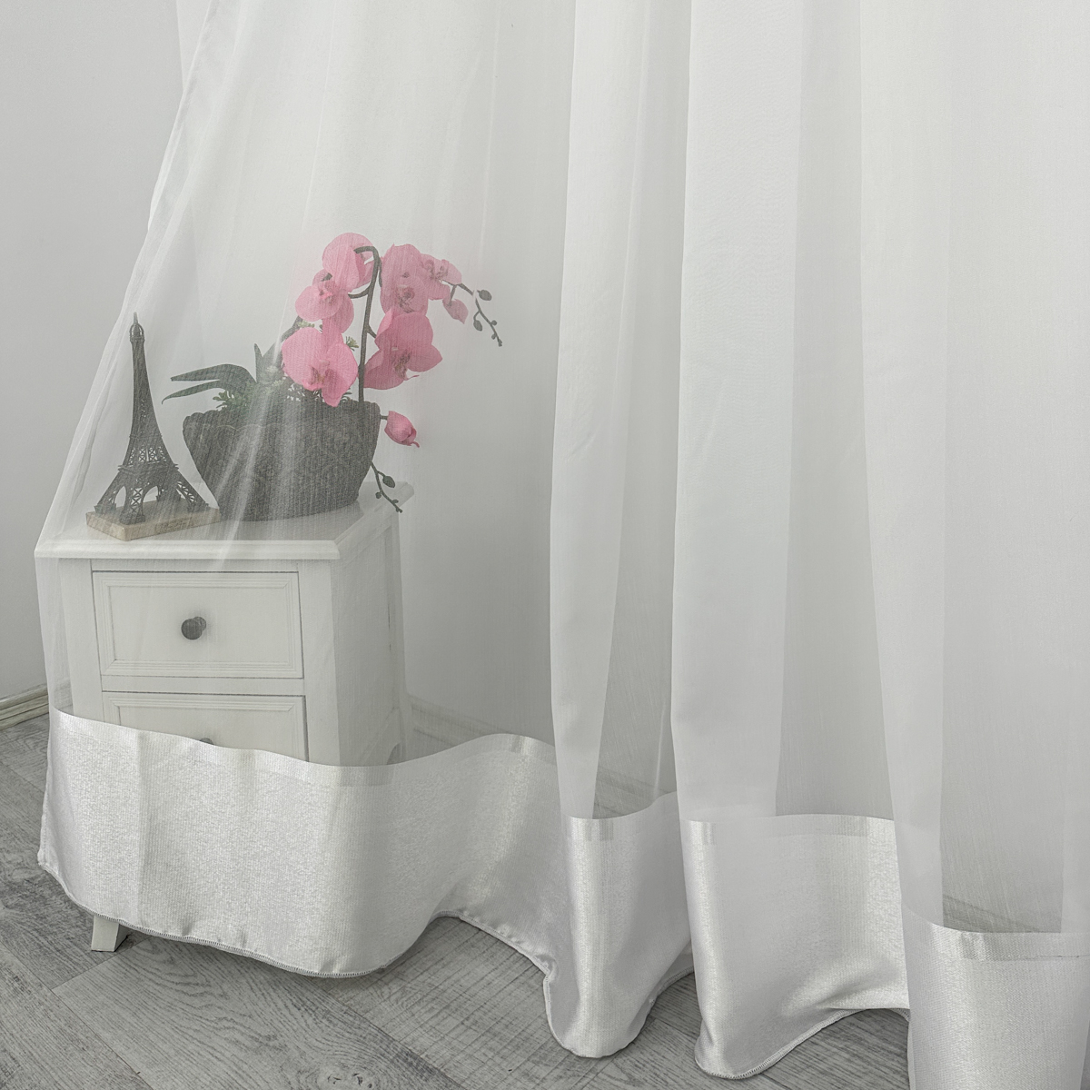 Perdea Dianne din Matase cu Banda Satinata, Alb, 140cm latime x 260cm inaltime, cu rejansa pt bara