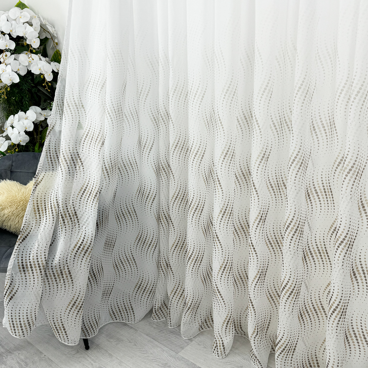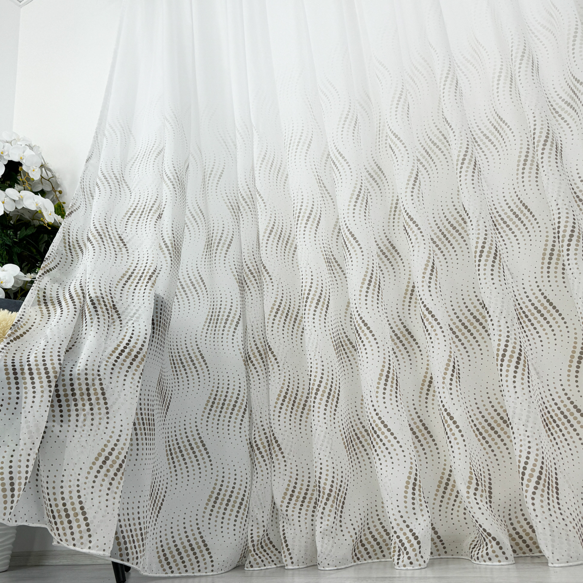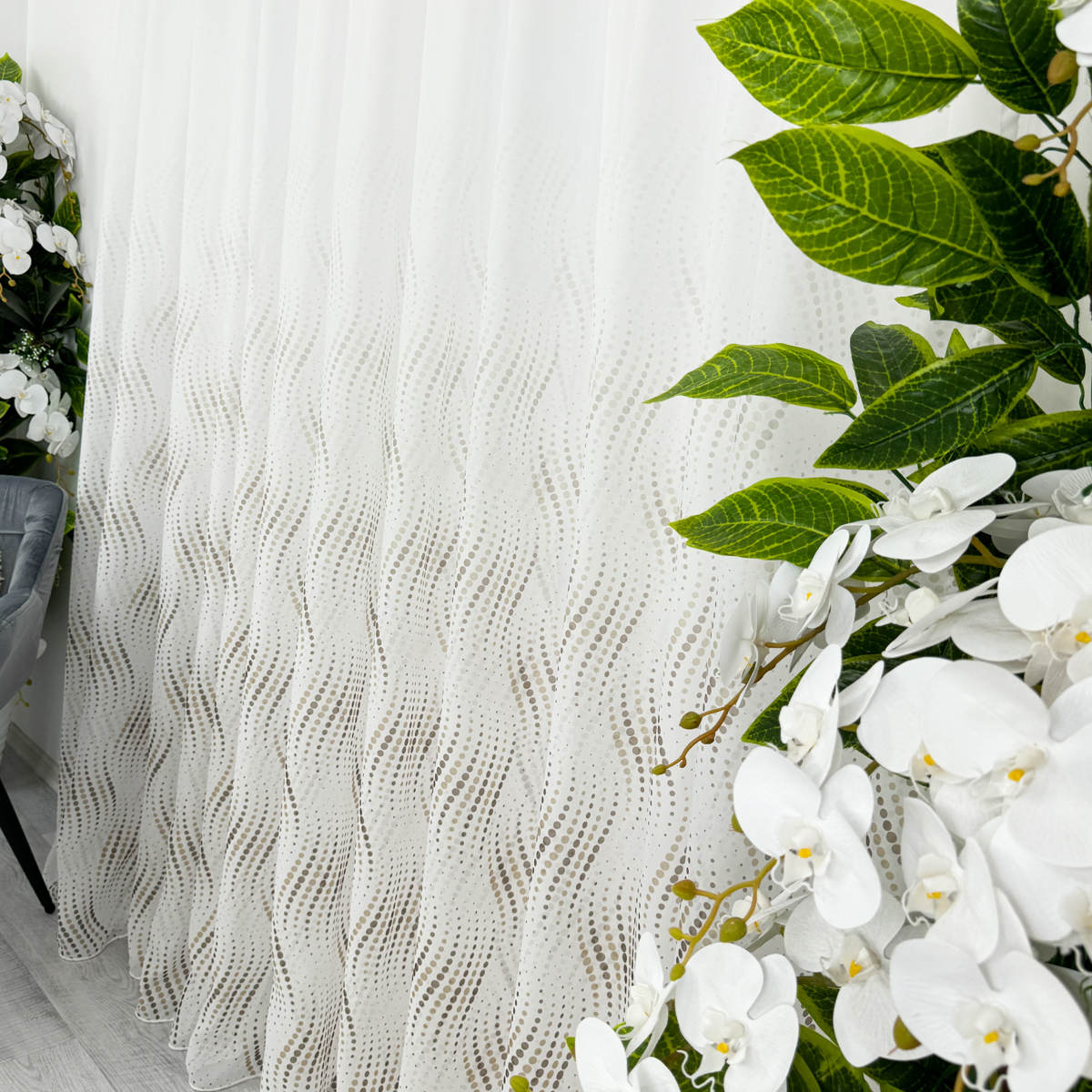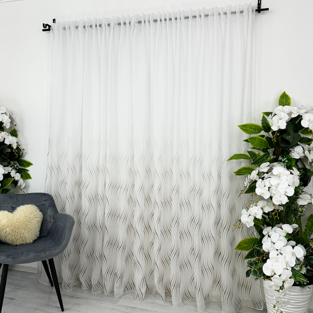 Perdea din voal imprimat, dimensiune standard, cu rejansa pt bara. COMPOZITIA MATERIALULUI: 100% poliester CONTINUTUL PACHETULUI: perdea, pe dimensiune standard - 1 bucata 100x260cm.INTRETINEREA PRODUSULUI: Se spala la max. 30°C si se calca la temperatura normala, cu abur. Nu se recomanda spalarea cu inalbitori chimici si nici uscarea prin centrifugare. Inainte de prima utilizare, recomandam spalarea draperiilor, pentru a elimina eventualele impuritati si urme de praf. SISTEM DE PRIND