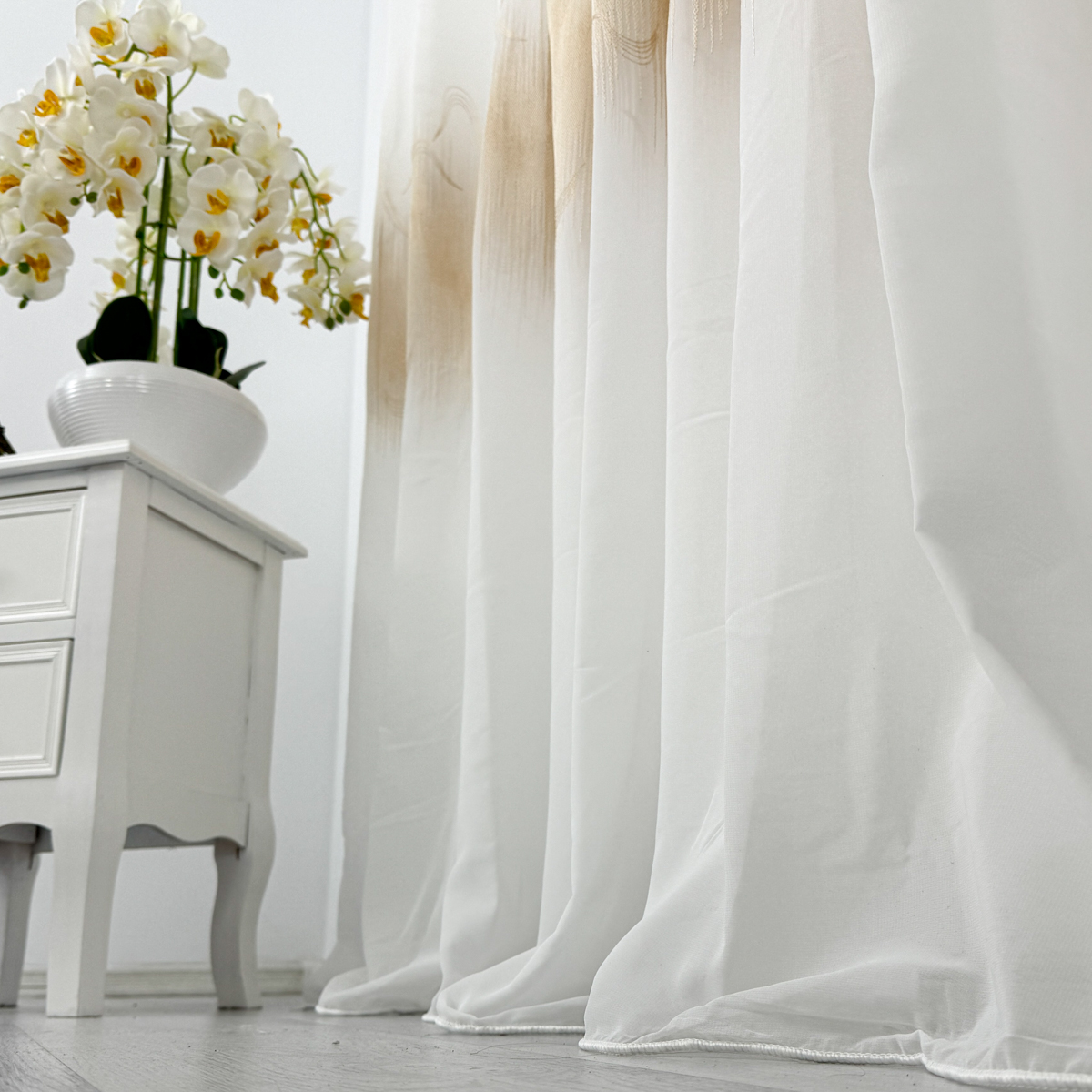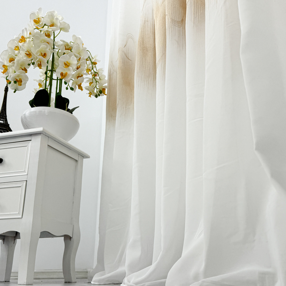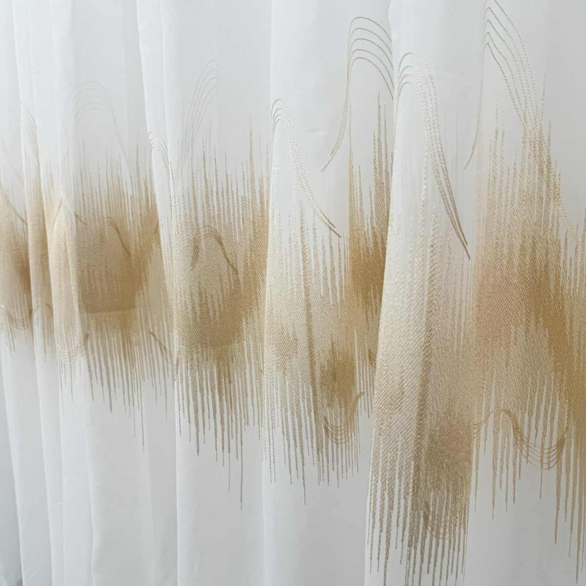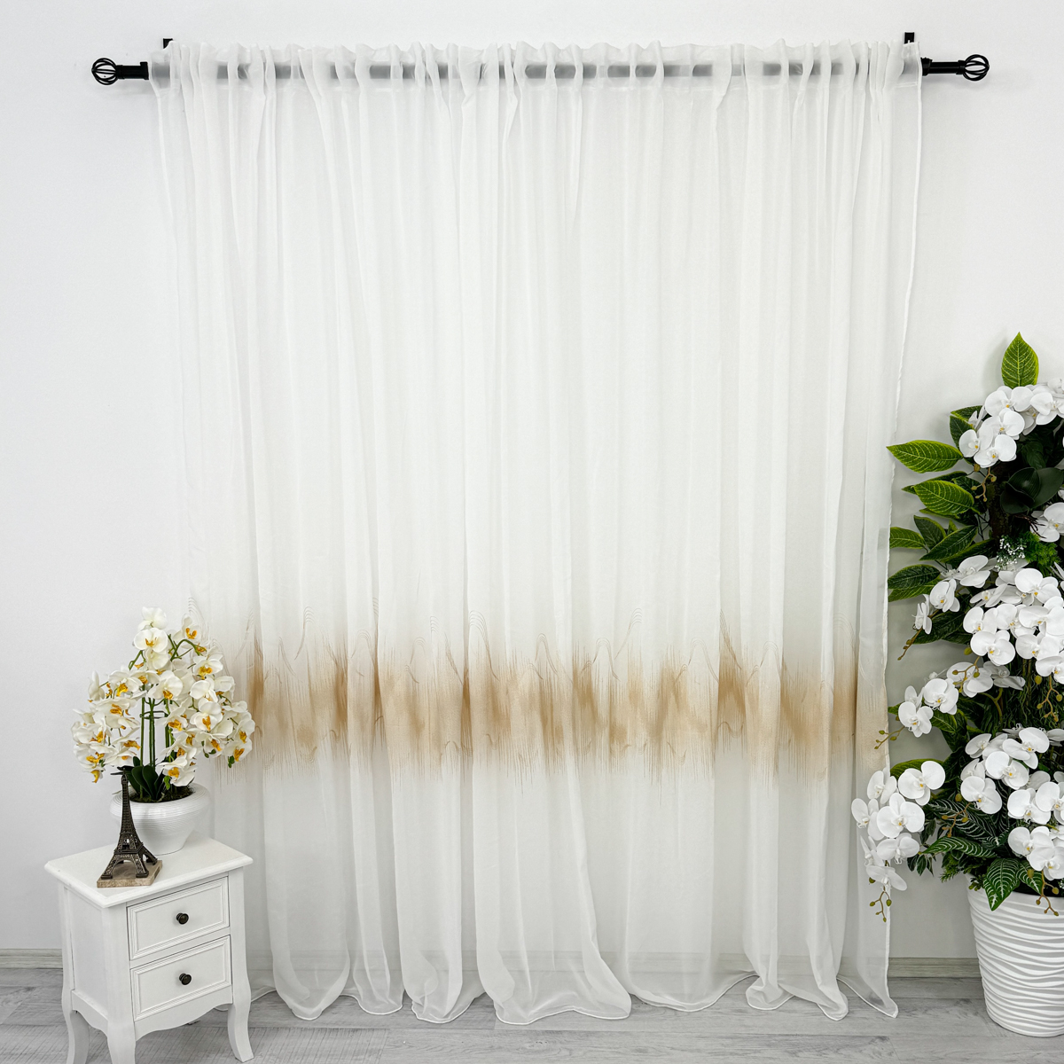 Perdea din voal brodat , dimensiune standard, cu rejansa pt bara. COMPOZITIA MATERIALULUI: 100% poliester CONTINUTUL PACHETULUI: perdea, pe dimensiune standard - 1 bucata 140x260cm.INTRETINEREA PRODUSULUI: Se spala la max. 30°C si se calca la temperatura normala, cu abur. Nu se recomanda spalarea cu inalbitori chimici si nici uscarea prin centrifugare. Inainte de prima utilizare, recomandam spalarea draperiilor, pentru a elimina eventualele impuritati si urme de praf. SISTEM DE PRINDE