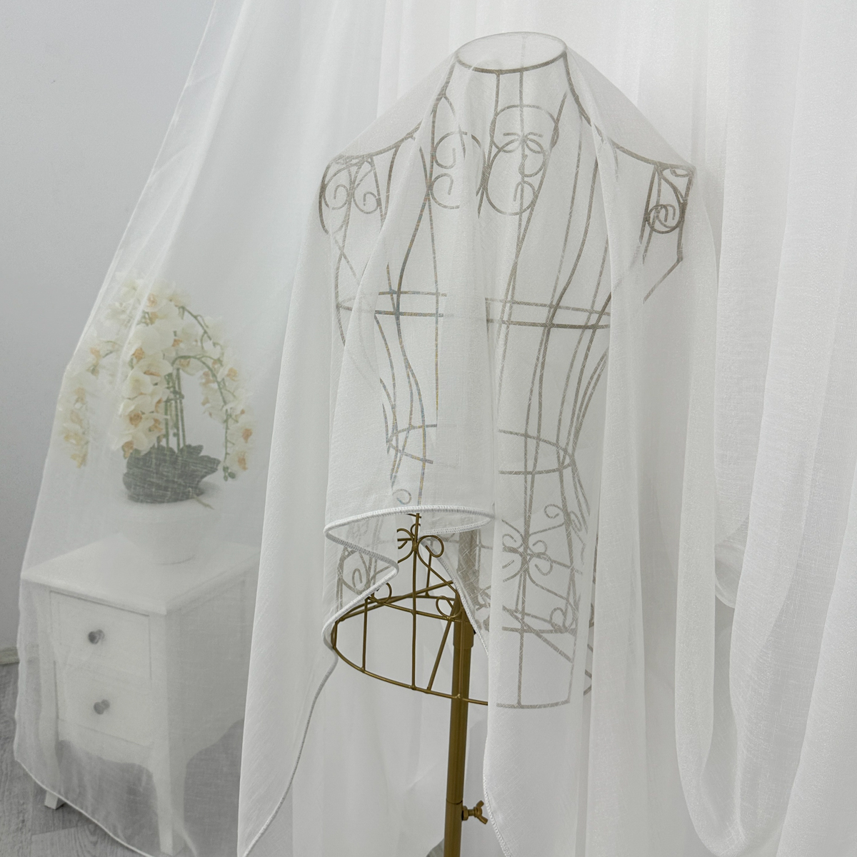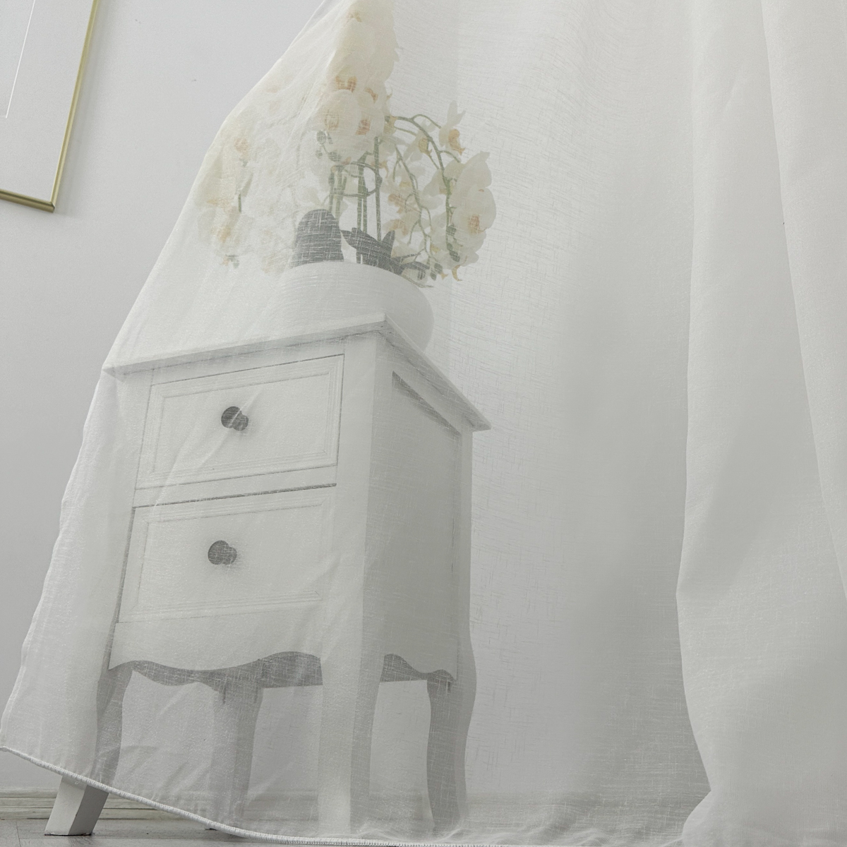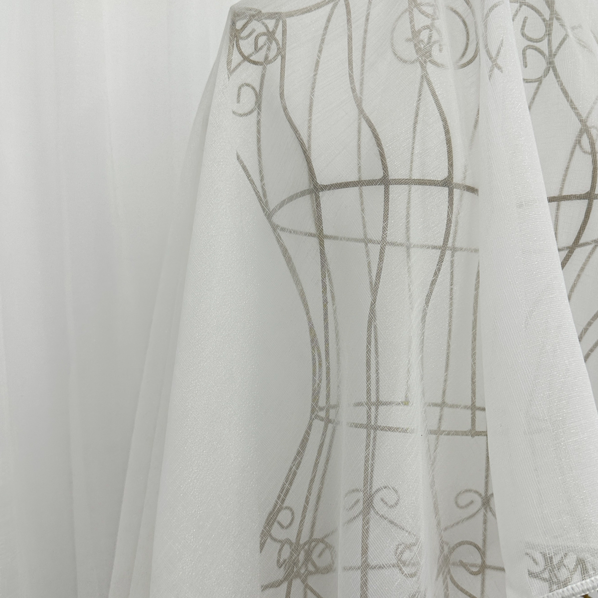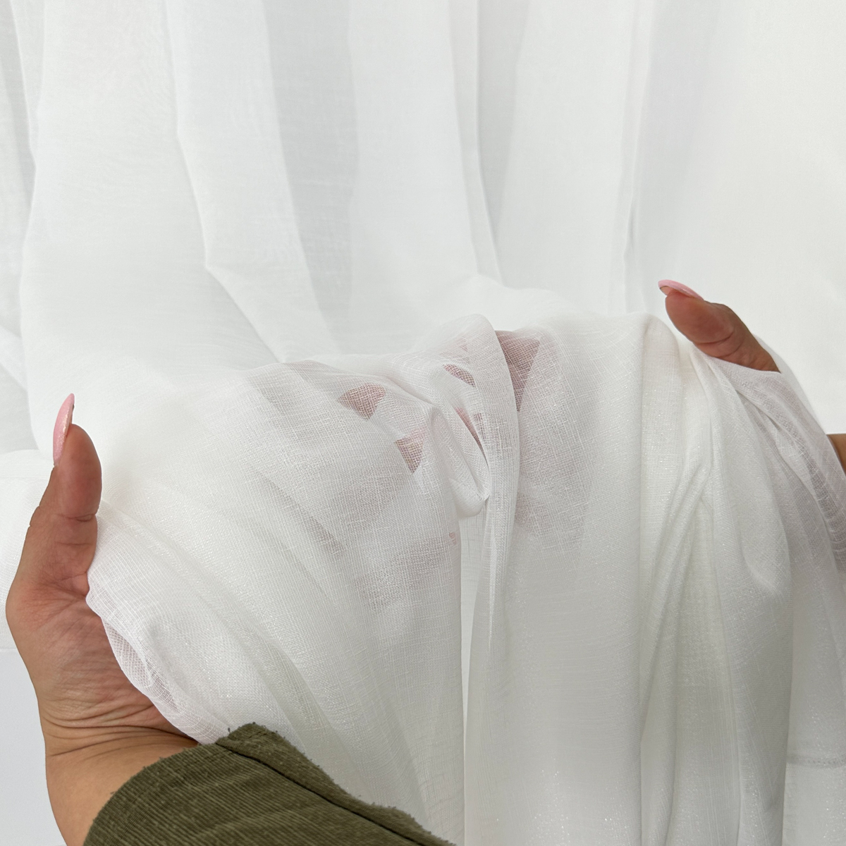 Perdea tip in cu sclipici, dimensiune standard, cu rejansa pt bara. COMPOZITIA MATERIALULUI: 100% poliester CONTINUTUL PACHETULUI: perdea, pe dimensiune standard - 1 bucata 140x260cm.INTRETINEREA PRODUSULUI: Se spala la max. 30°C si se calca la temperatura normala, cu abur. Nu se recomanda spalarea cu inalbitori chimici si nici uscarea prin centrifugare. Inainte de prima utilizare, recomandam spalarea draperiilor, pentru a elimina eventualele impuritati si urme de praf. SISTEM DE PRIN