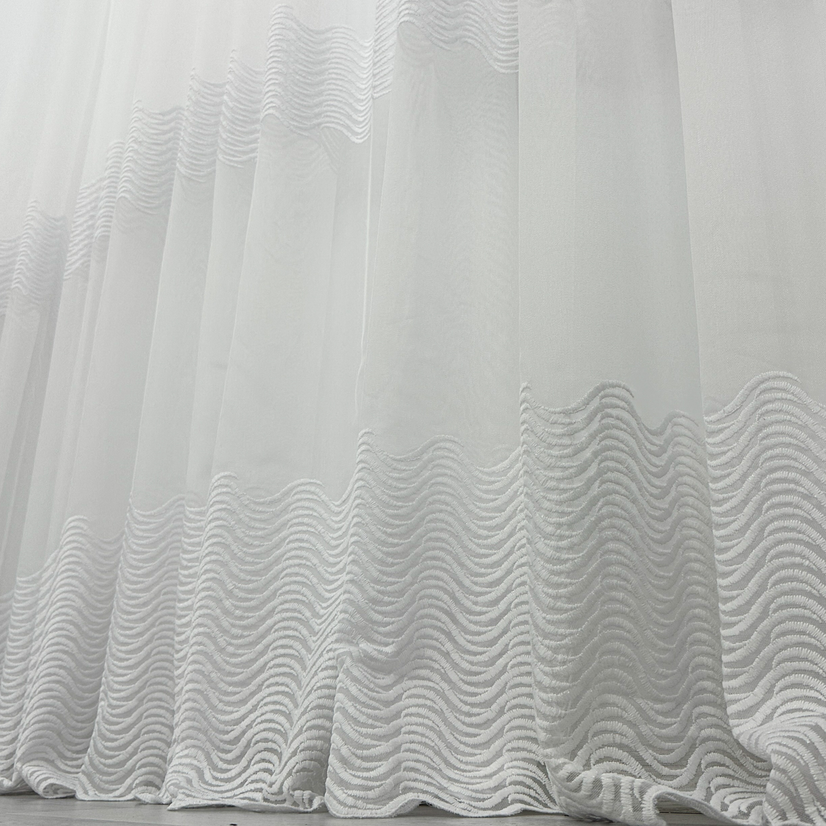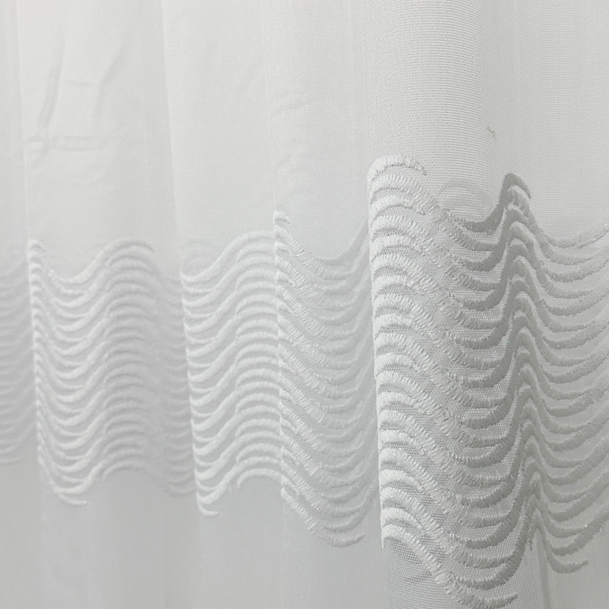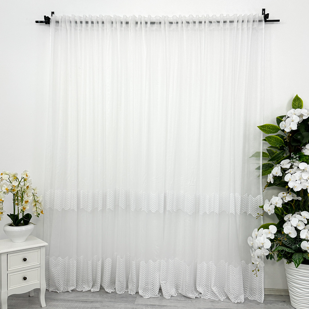 Perdea Waves din Tulle cu Broderie, Alb, 100cm latime x 260cm inaltime, cu rejansa pt bara