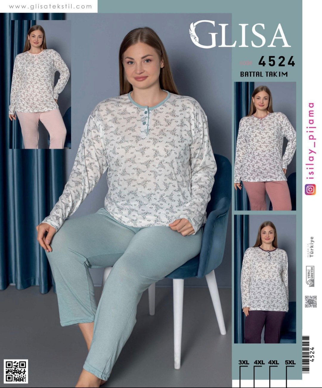 Pijamale Engros pentru dama batal , Glisa Bluza imprimeu, pantalonii iunii Material: bumbac 50%, poliester 50% Marimi in serie : 3xl 4xl 4Xl 5xl