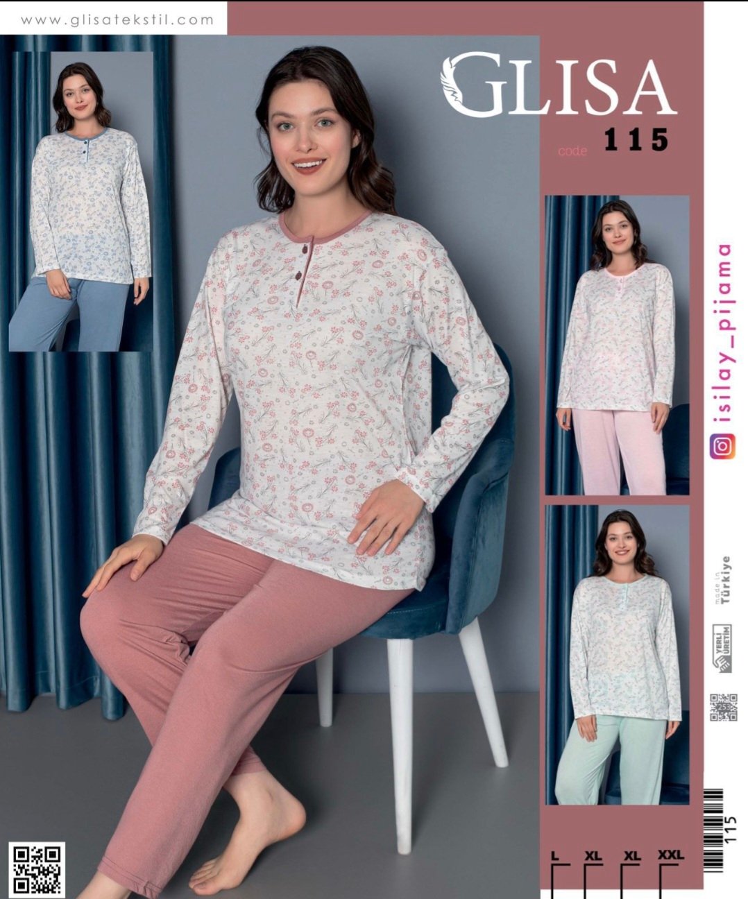 Pijamale Engros pentru dama, Glisa Bluza imprimeu, pantalonii iunii Material: bumbac 50%, poliester 50% Marimi in serie : L Xl Xl 2Xl