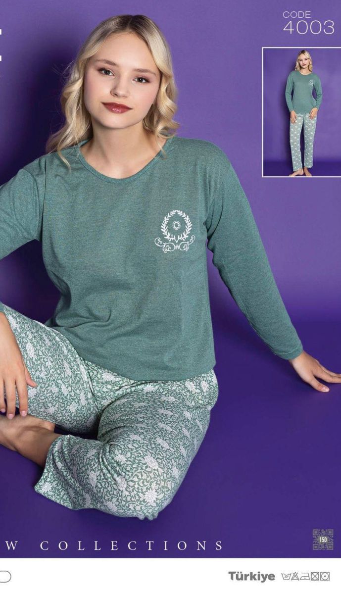 Pijamle, dama cu maneca lunga, ,verde imprimeu alb ,Engros