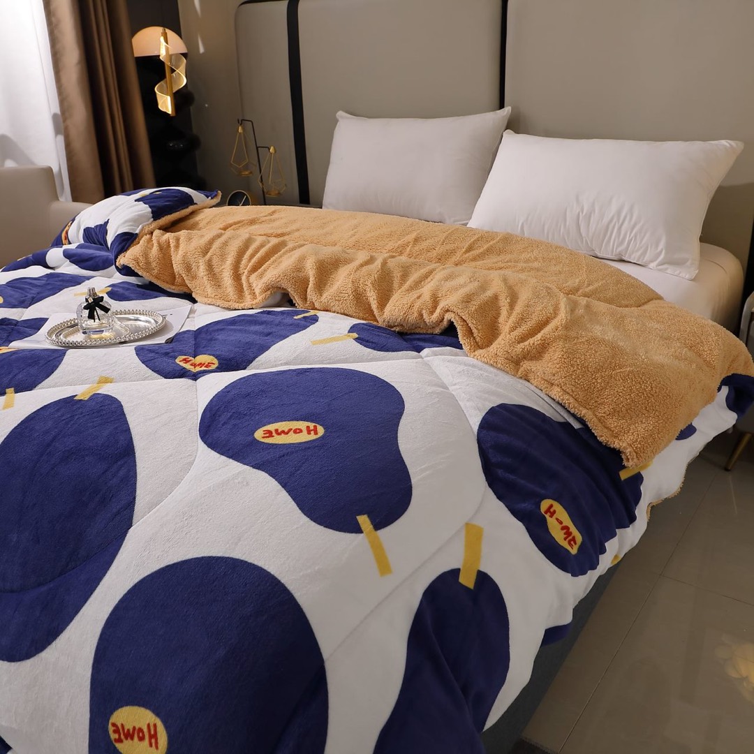 Pilota Cocolino cu Blanita Bej Ultra Pufoasa, Matlasata, 200x230 cm – Caldura Instanta si Confort de Lux pentru Nopti Reci, Alb, buline