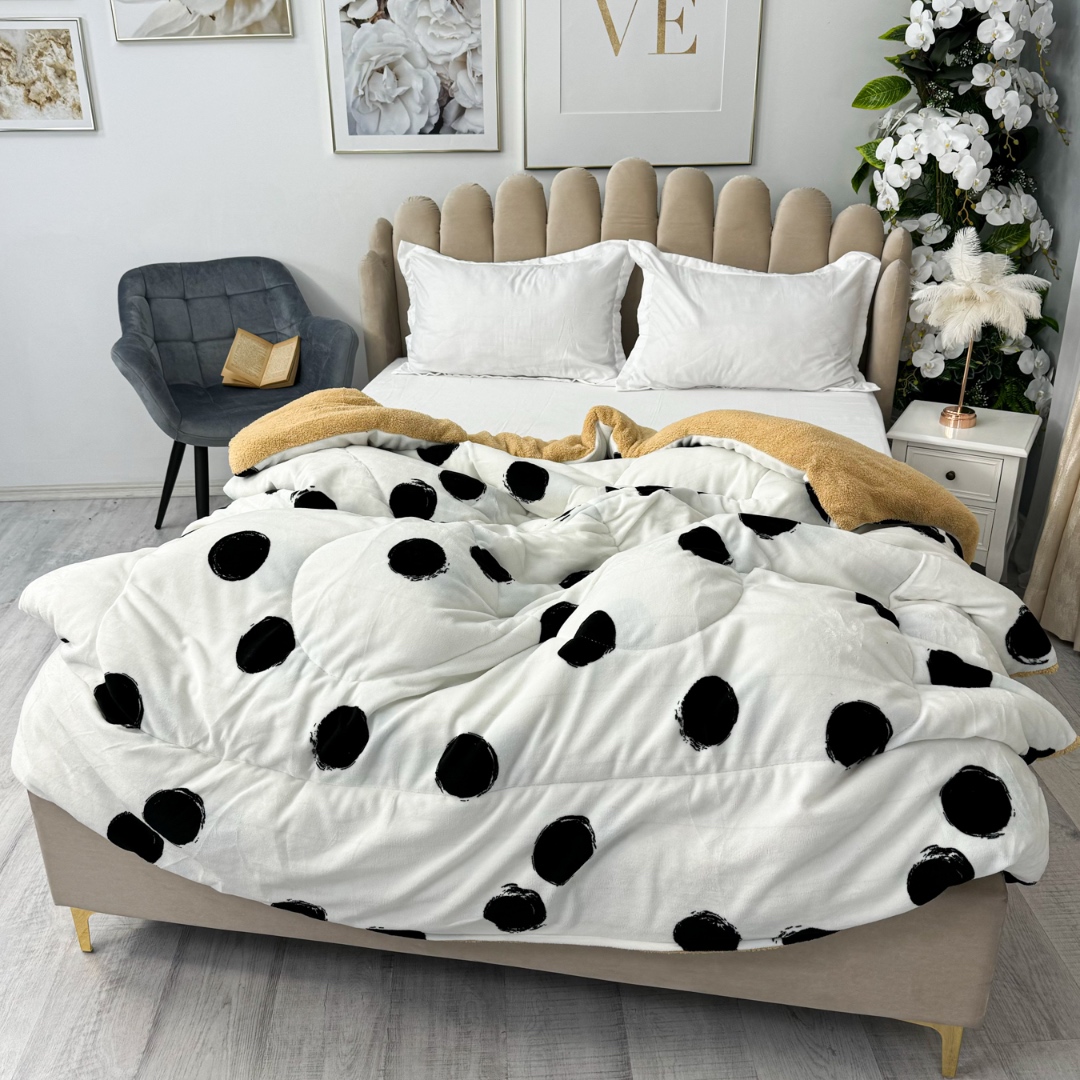 Pilota Cocolino cu Blanita Bej Ultra Pufoasa, Matlasata, 200x230 cm – Caldura Instanta si Confort de Lux pentru Nopti Reci, Alb, buline