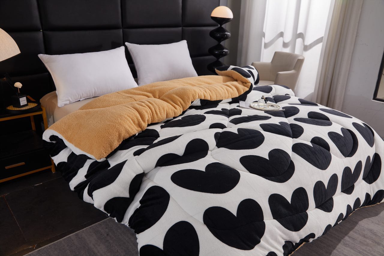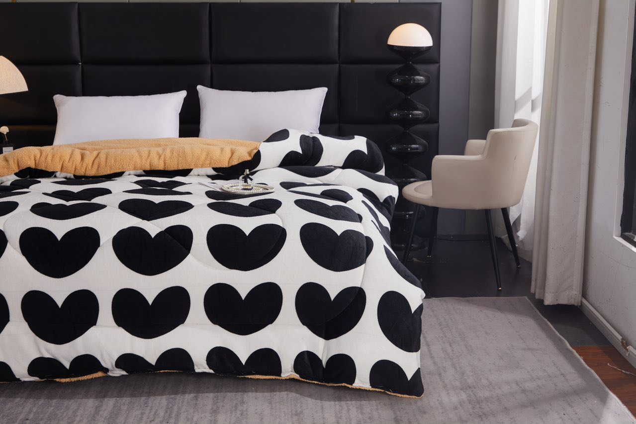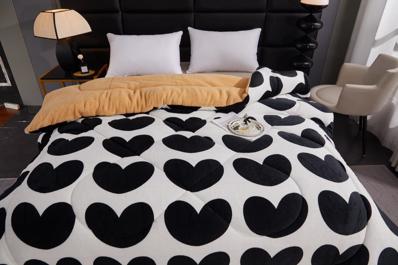 Pilota Cocolino cu Blanita Bej Ultra Pufoasa, Matlasata, 200x230 cm – Caldura Instanta si Confort de Lux pentru Nopti Reci, Alb, inimioare
