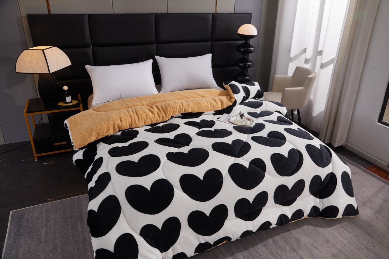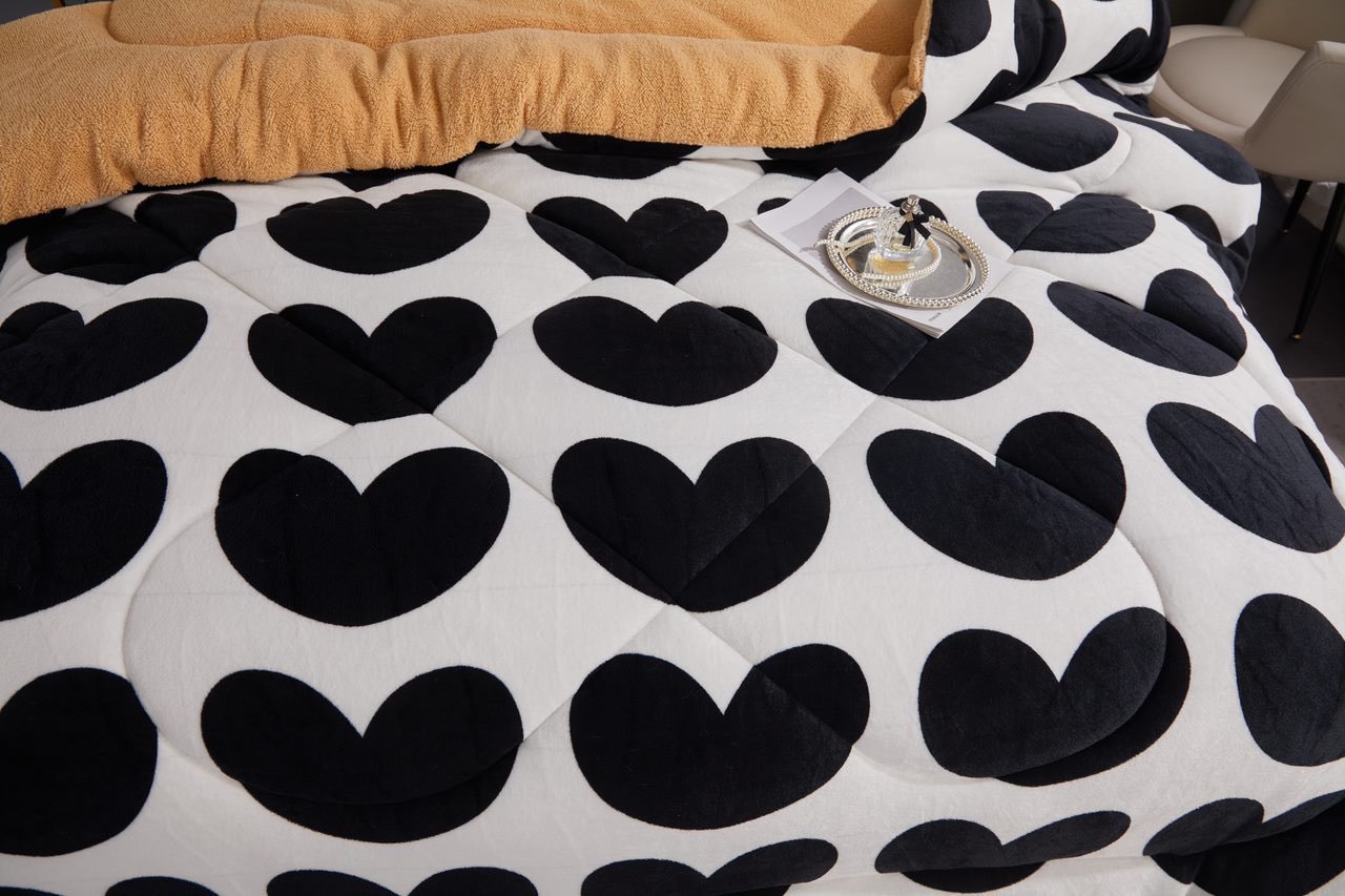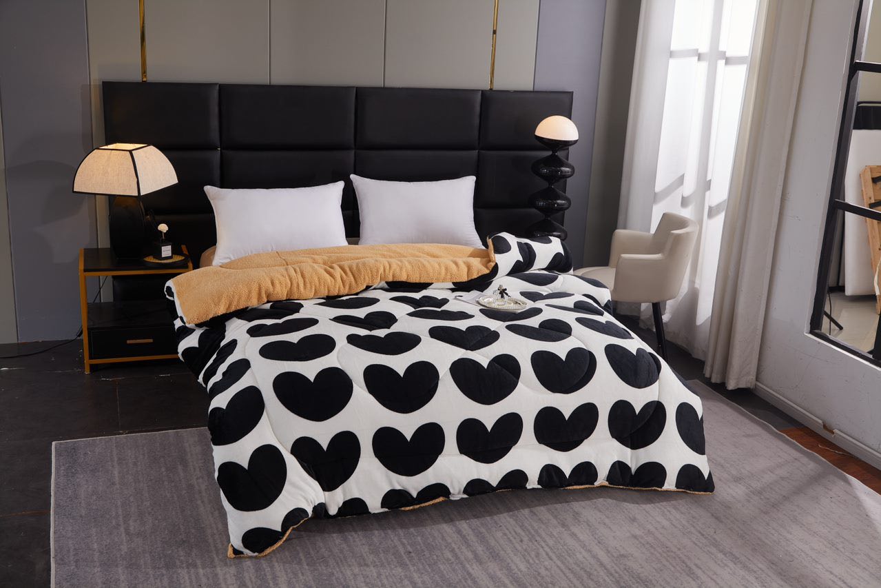 Pilota Cocolino cu Blanita Bej Ultra Pufoasa, Matlasata, 200x230 cm – Caldura Instanta si Confort de Lux pentru Nopti Reci, Alb, inimioare