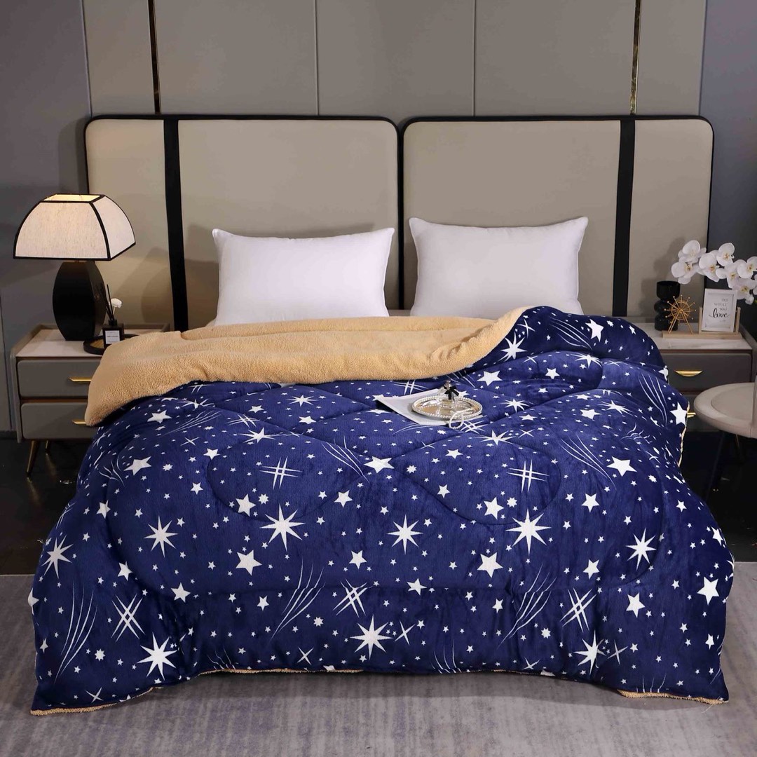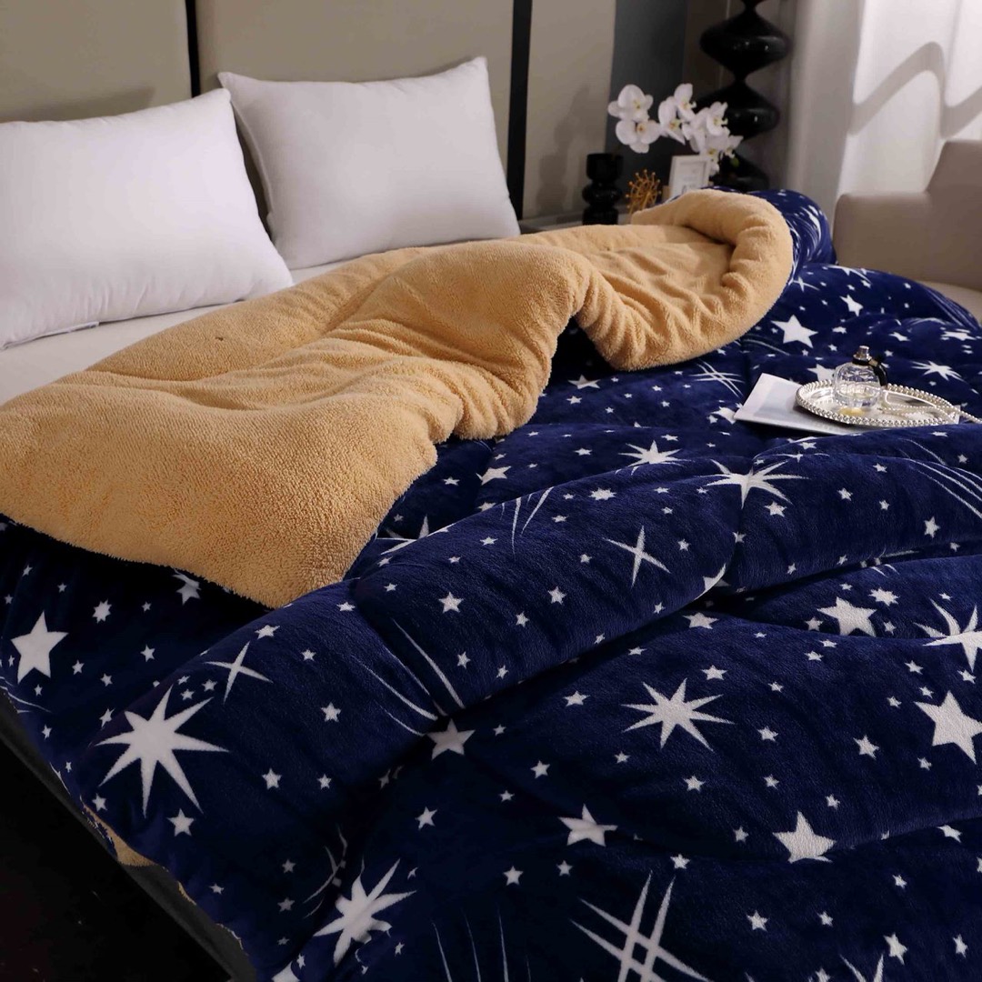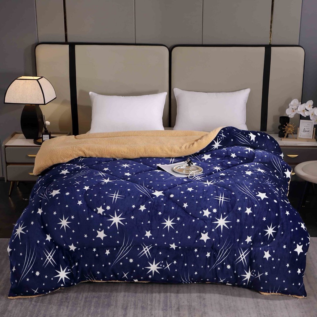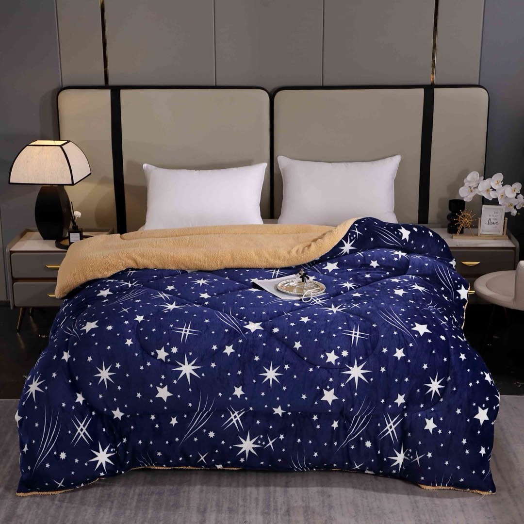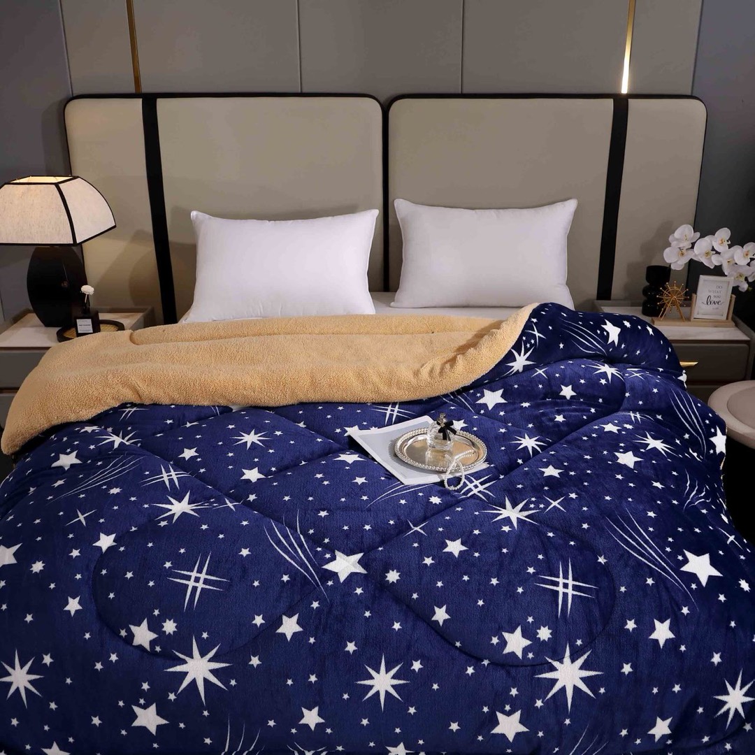 Pilota Cocolino cu Blanita Bej Ultra Pufoasa, Matlasata, 200x230 cm – Caldura Instanta si Confort de Lux pentru Nopti Reci, Albastru, ploaia de stele