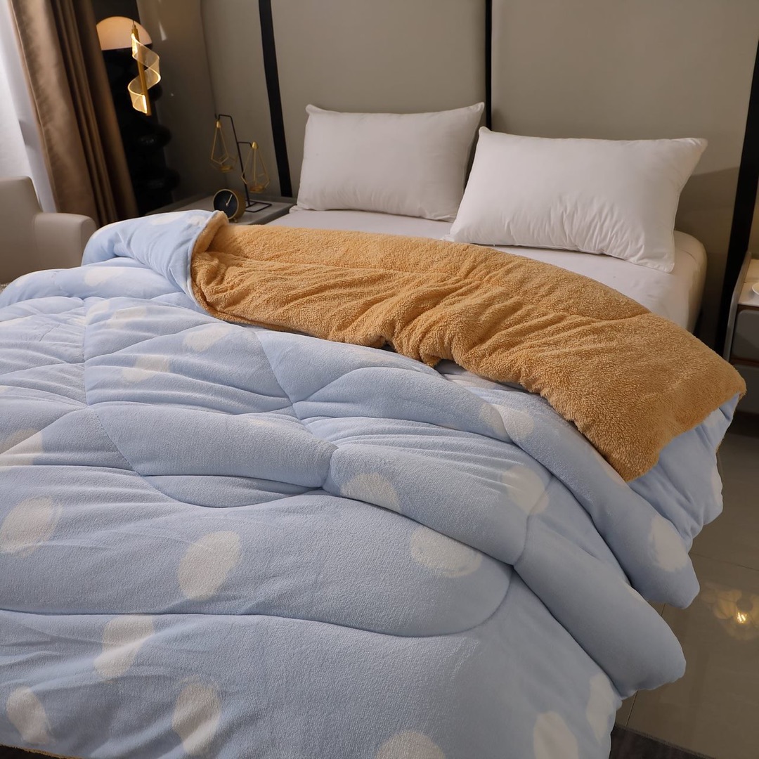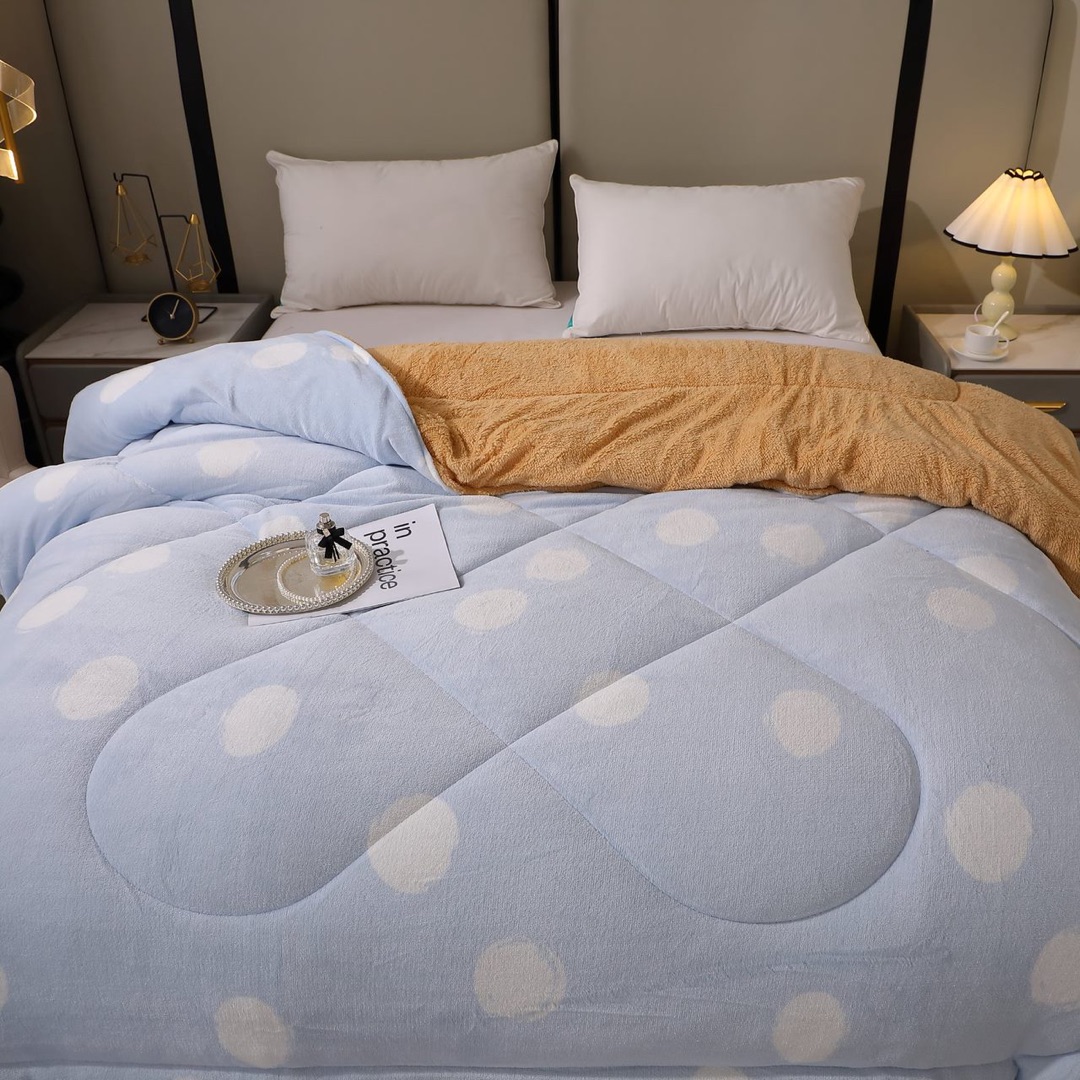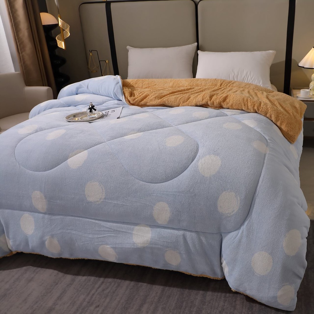 Pilota Cocolino cu Blanita Bej Ultra Pufoasa, Matlasata, 200x230 cm – Caldura Instanta si Confort de Lux pentru Nopti Reci, Bleu, buline