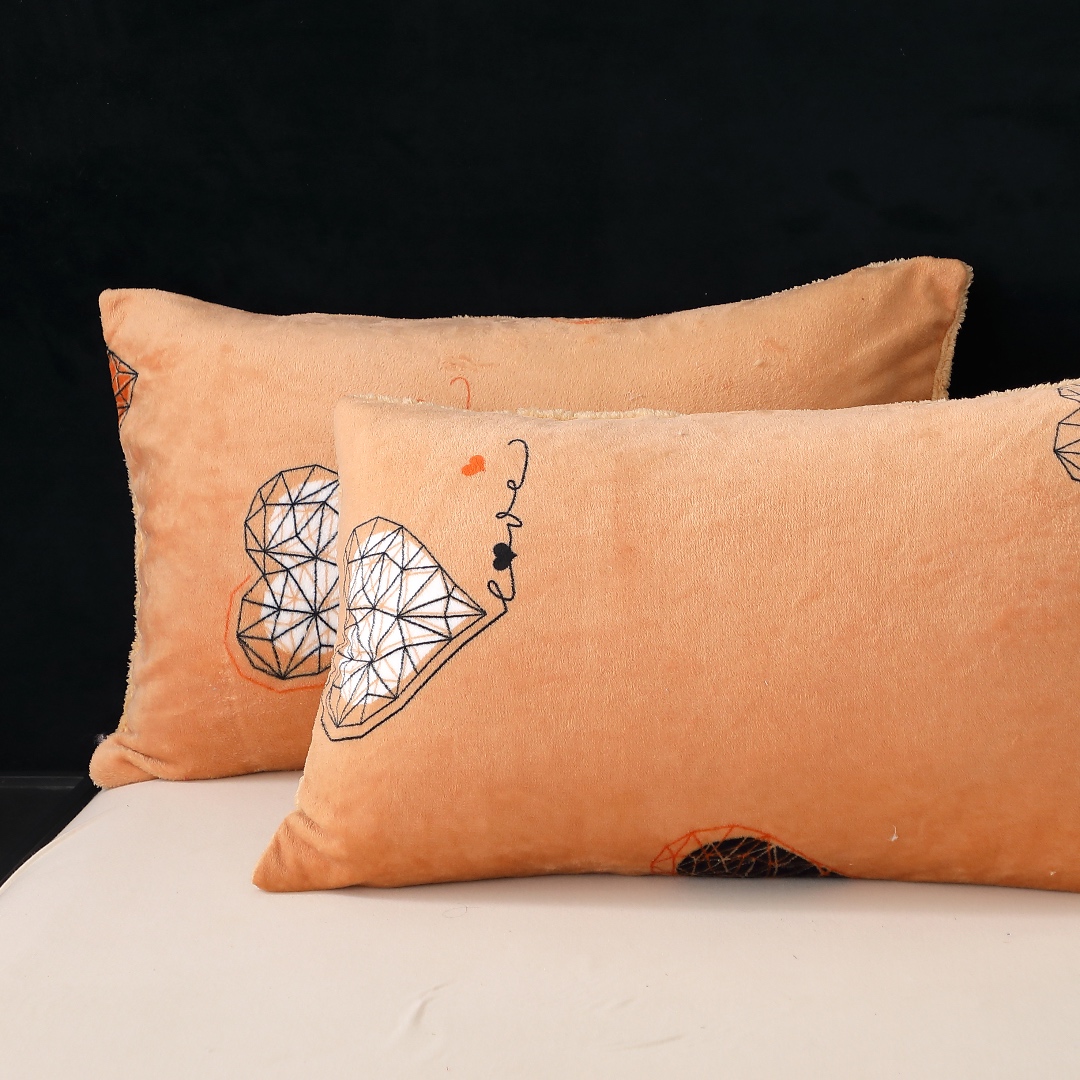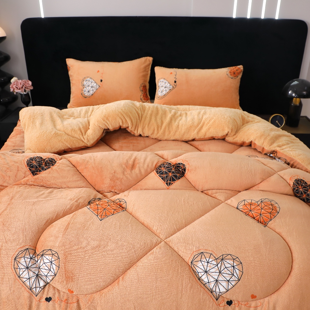 Pilota Cocolino cu Blanita Bej Ultra Pufoasa, Matlasata, 200x230cm + 2 fete de perna 50x70cm – Caldura Instanta si Confort de Lux pentru Nopti Reci, Bej, Negru, Inimioare