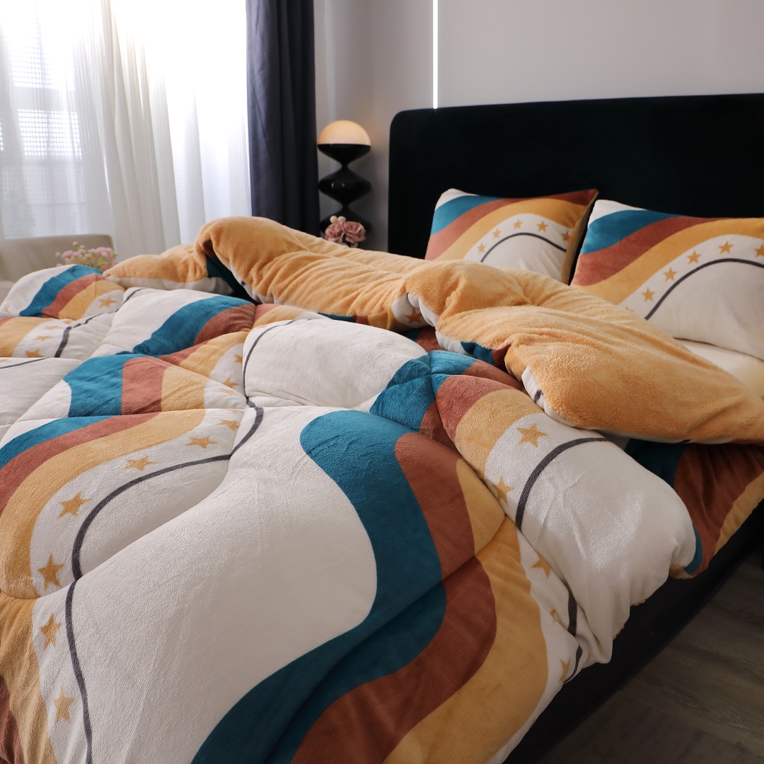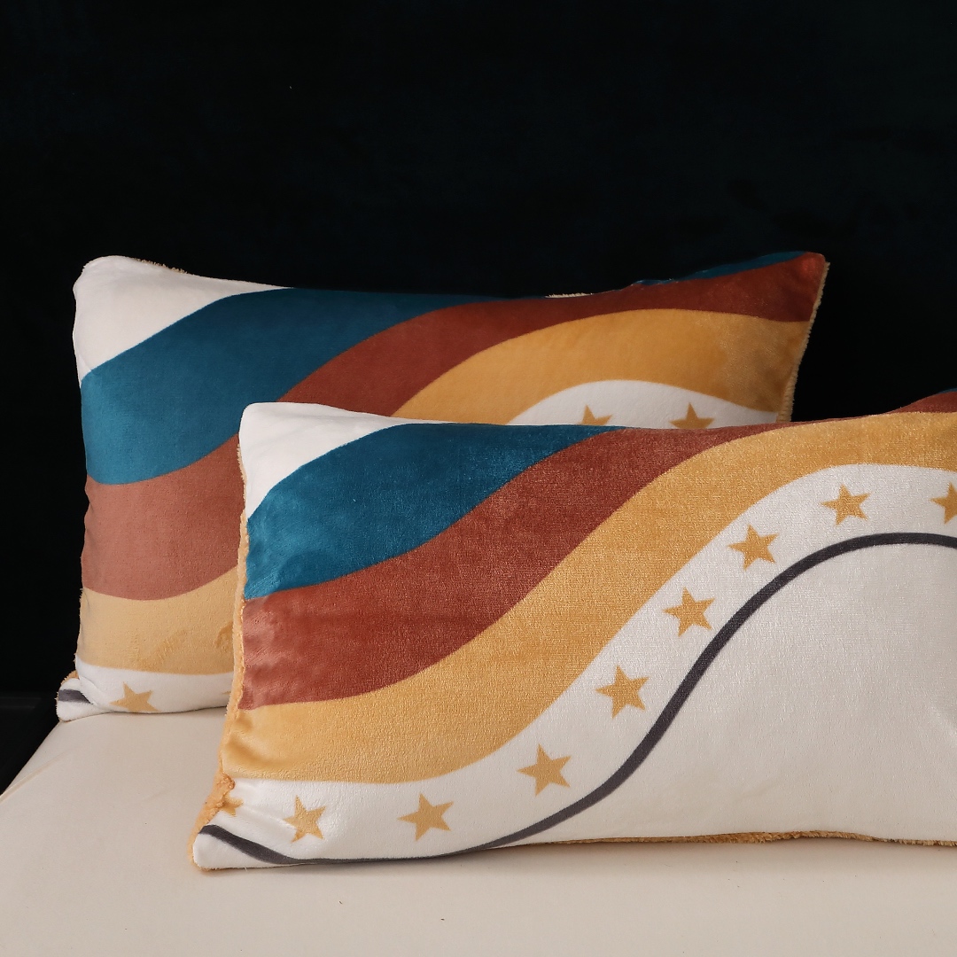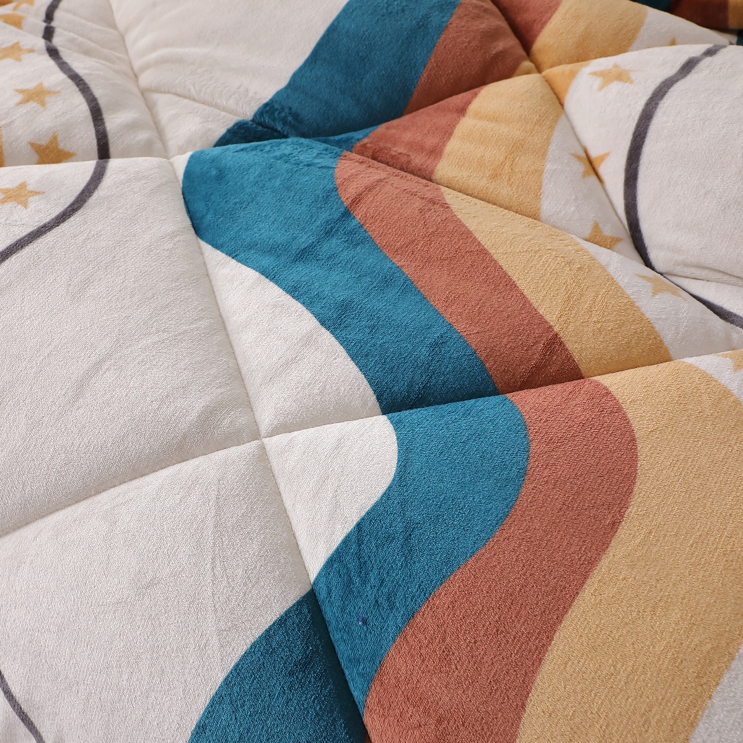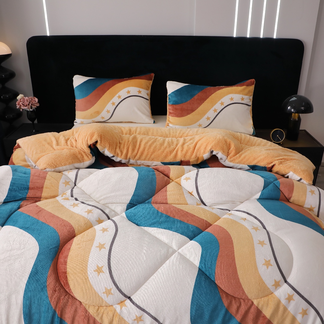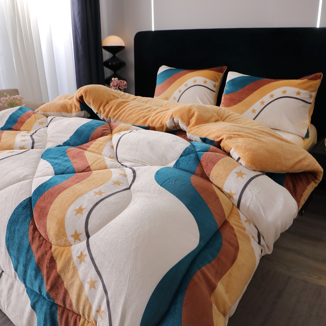 Pilota Cocolino cu Blanita Bej Ultra Pufoasa, Matlasata, 200x230cm + 2 fete de perna 50x70cm – Caldura Instanta si Confort de Lux pentru Nopti Reci, Crem, Bej, Verde, Maro, Dungi, Stelute