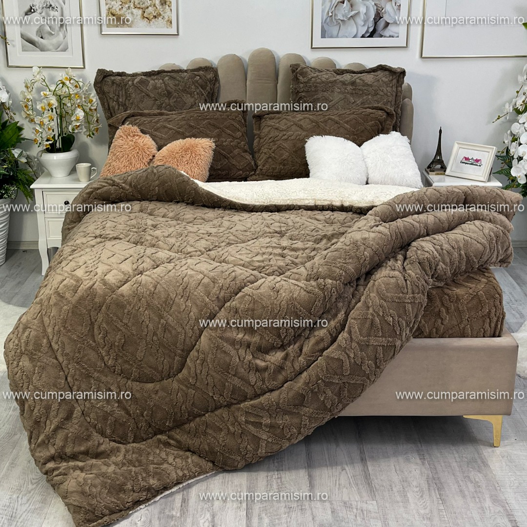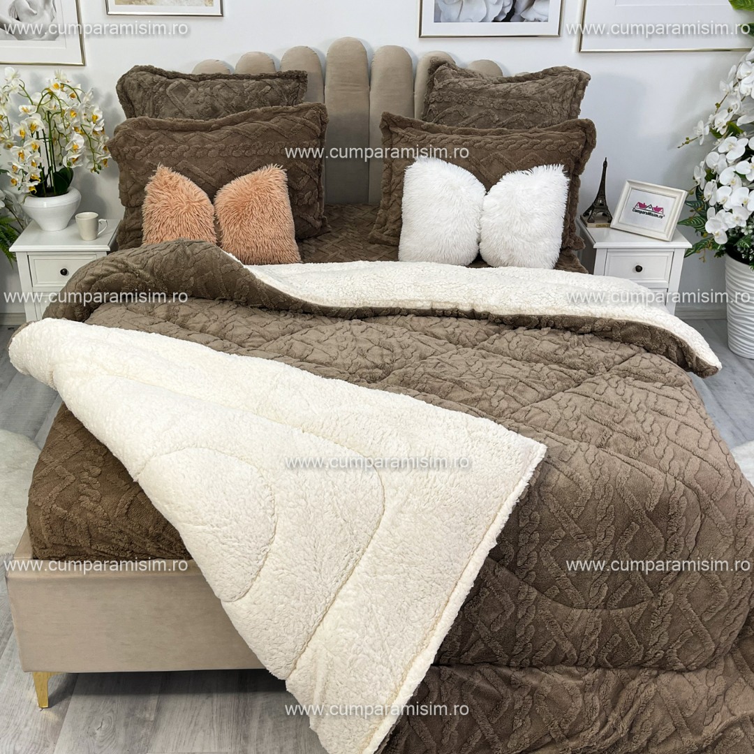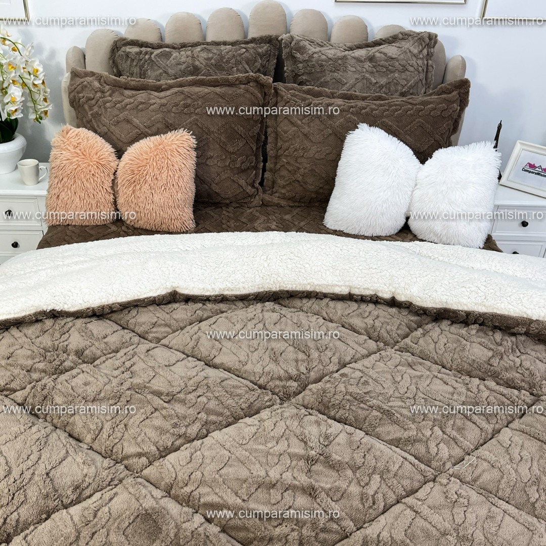 Pilota CoCoLiNo Sherpa tip Tricotaj cu blanita, matlasata, 200x230cm, bej inchis