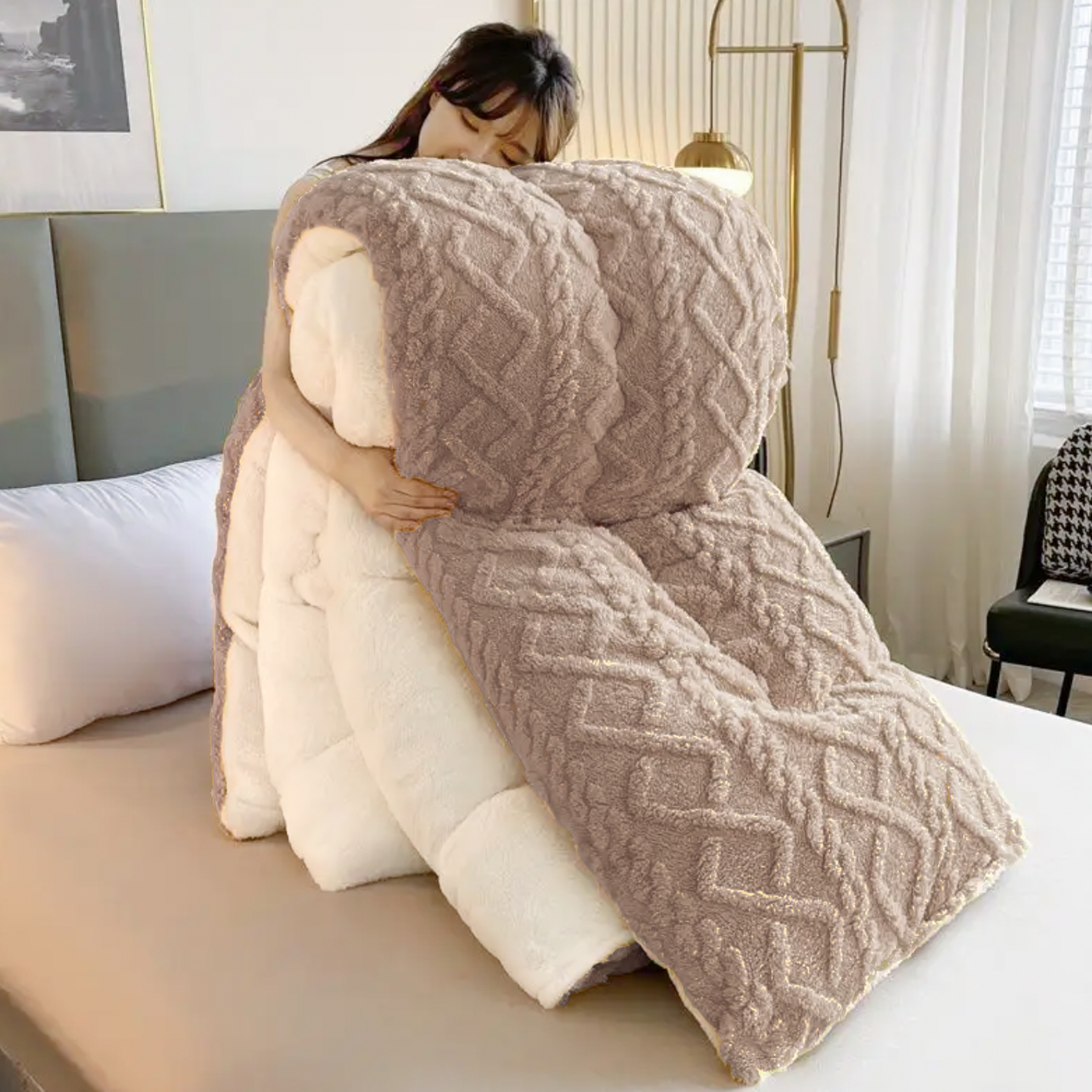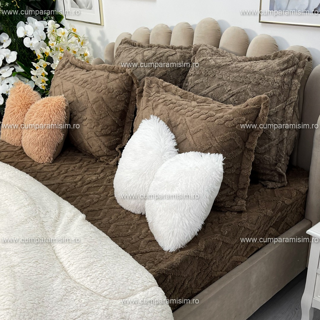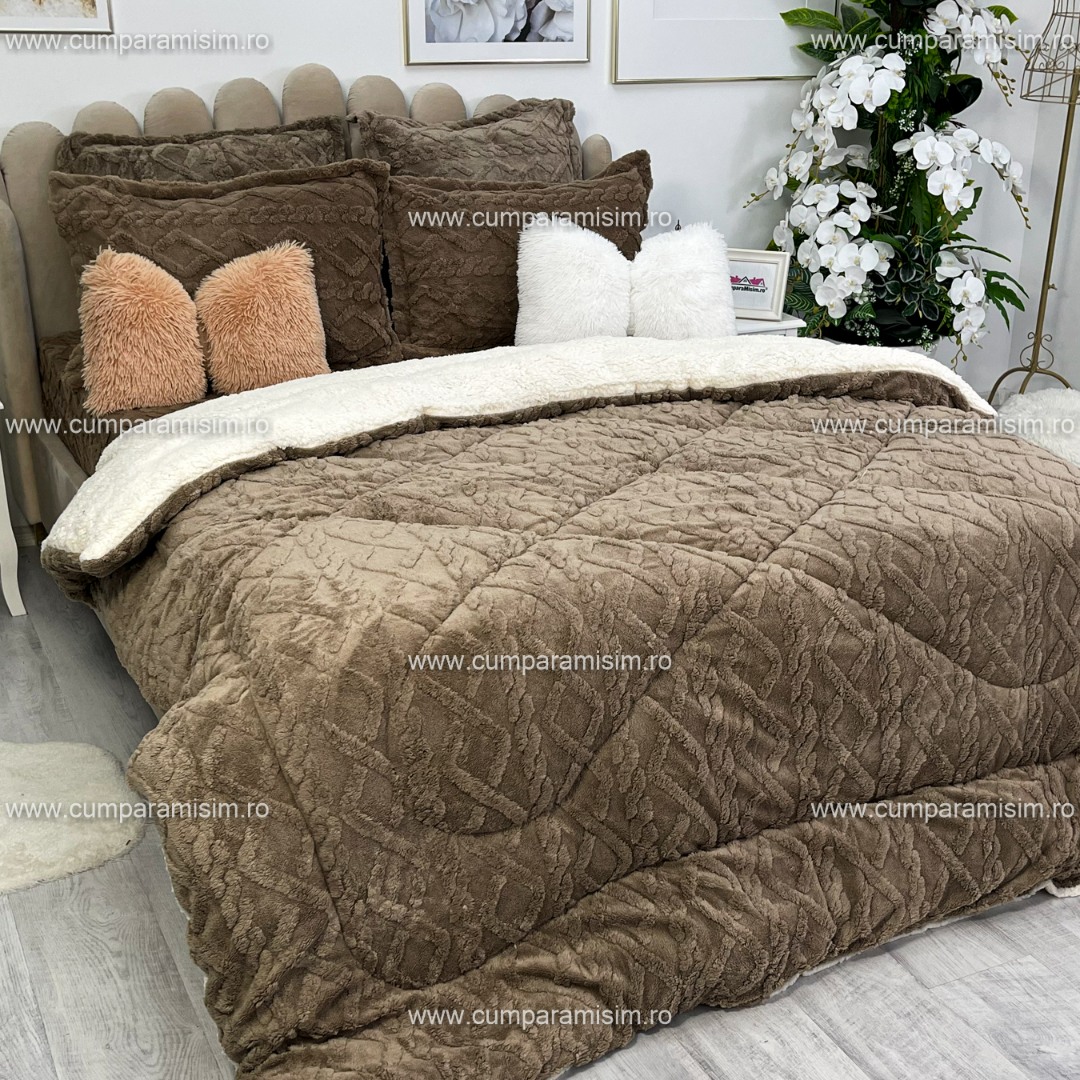 Pilota CoCoLiNo Sherpa tip Tricotaj cu blanita, matlasata, 200x230cm, bej inchis