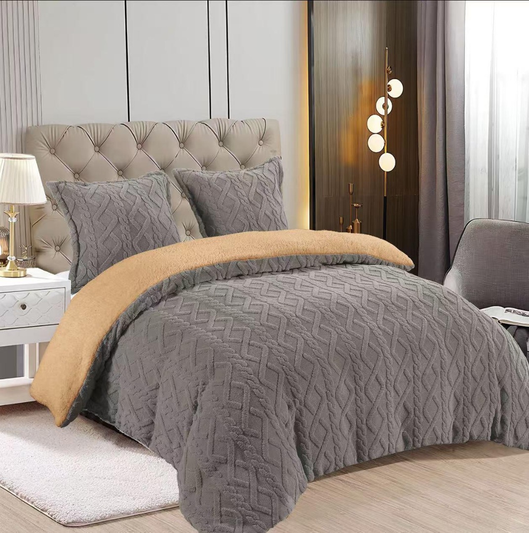 Pilota CoCoLiNo Sherpa tip Tricotaj cu blanita, matlasata, 200x230cm, Gri inchis