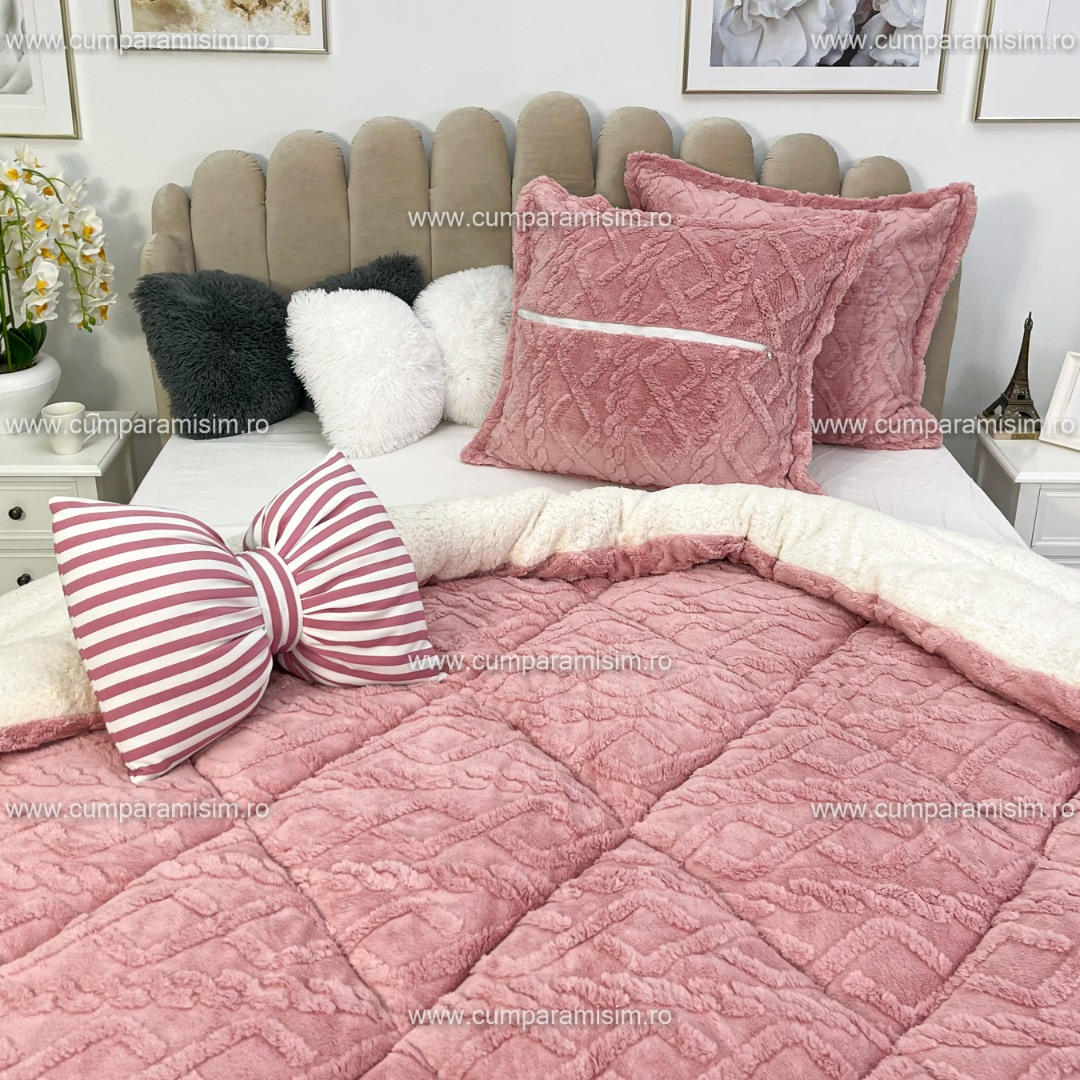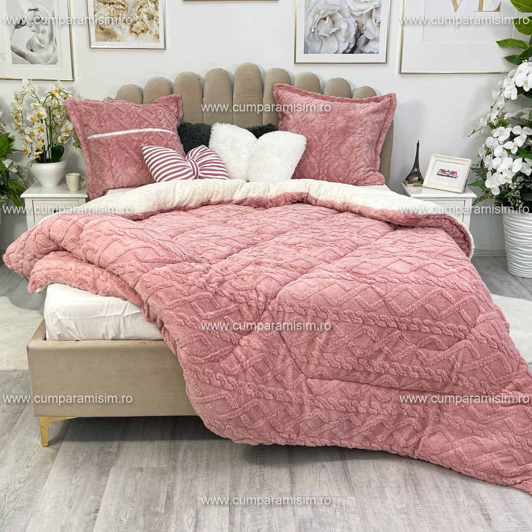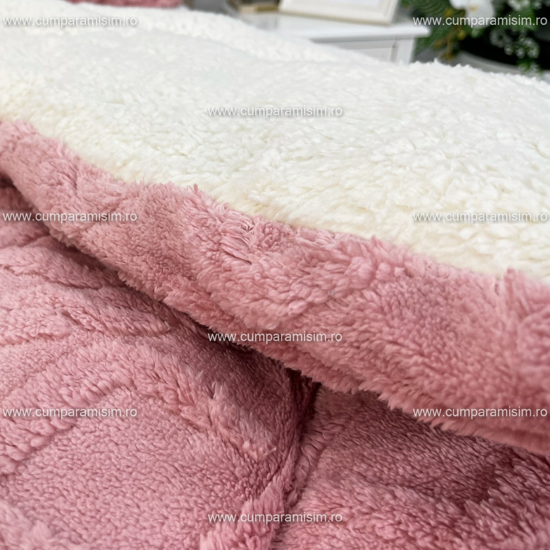 Pilota CoCoLiNo Sherpa tip Tricotaj cu blanita, matlasata, 200x230cm, roz