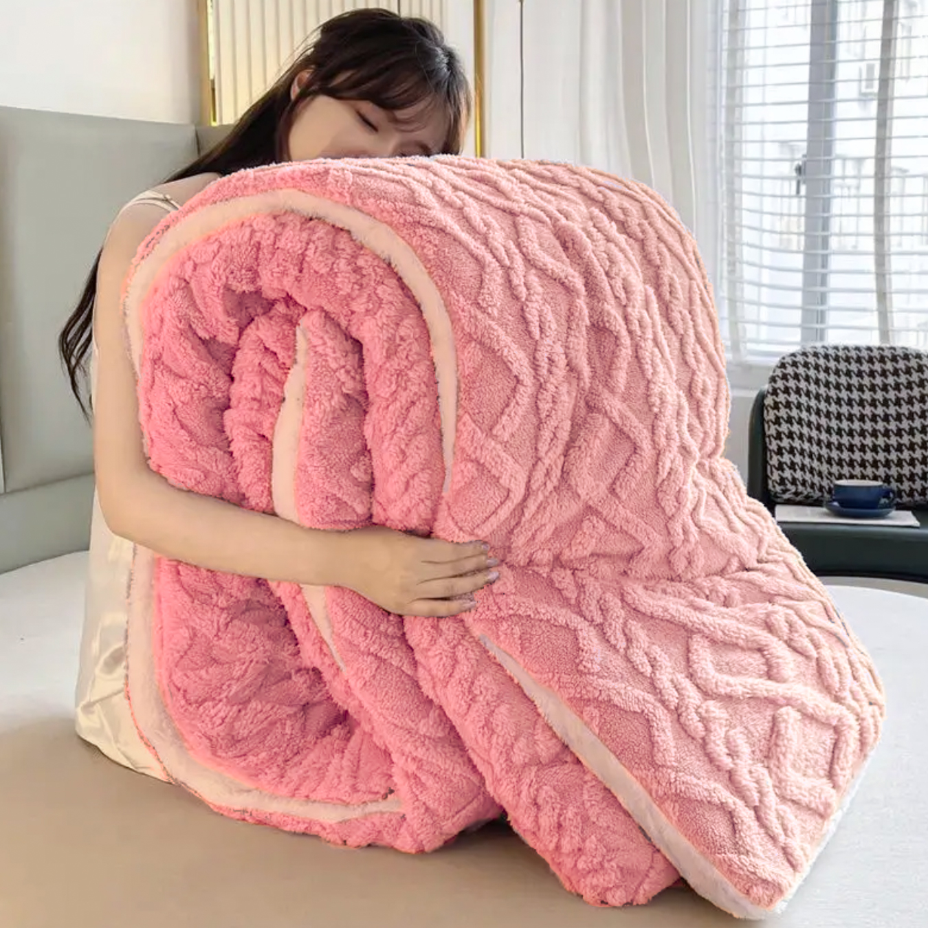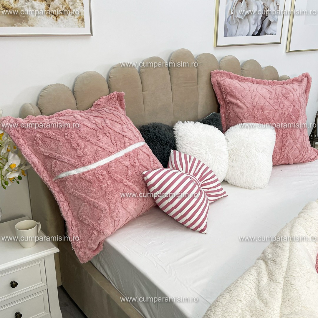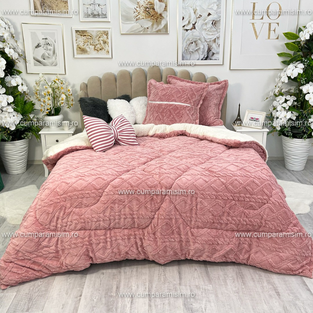 Pilota CoCoLiNo Sherpa tip Tricotaj cu blanita, matlasata, 200x230cm, roz