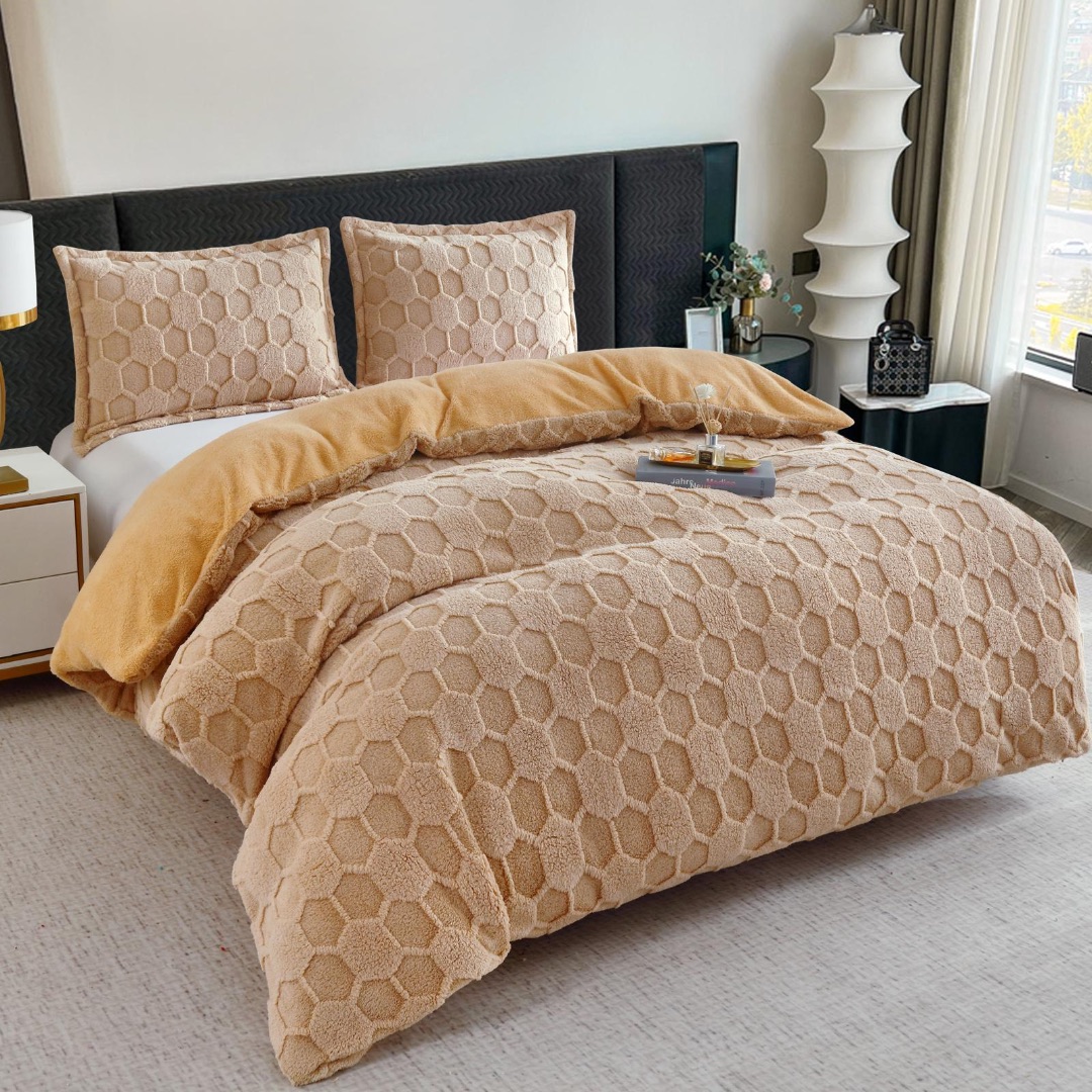 Pilota Groasa Cocolino Gofrat 3D Model in Relief cu Fagure si Dos din Blanita Sherpa, Umplutura Vatelina Siliconica, 200x230 cm + 2 Fete de Perna 50x70 cm - Caldura si Rafinament pentru Un Somn Odihnitor, Bej