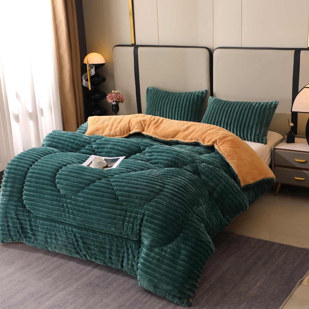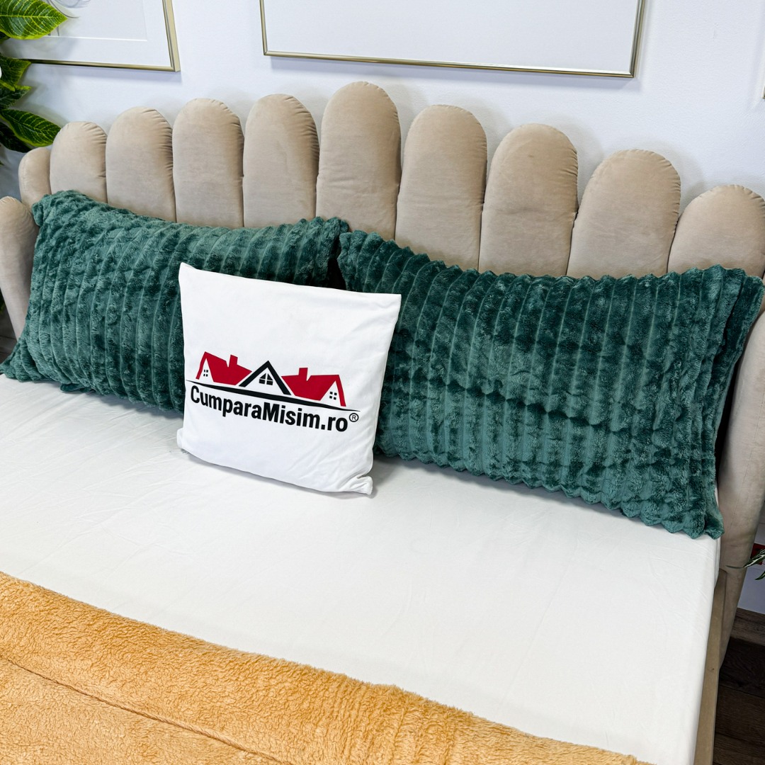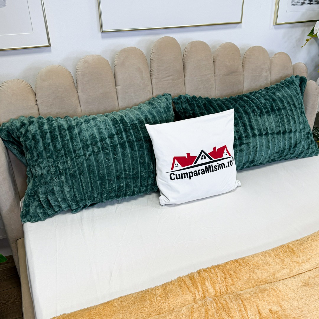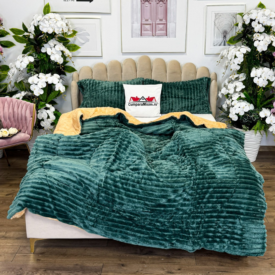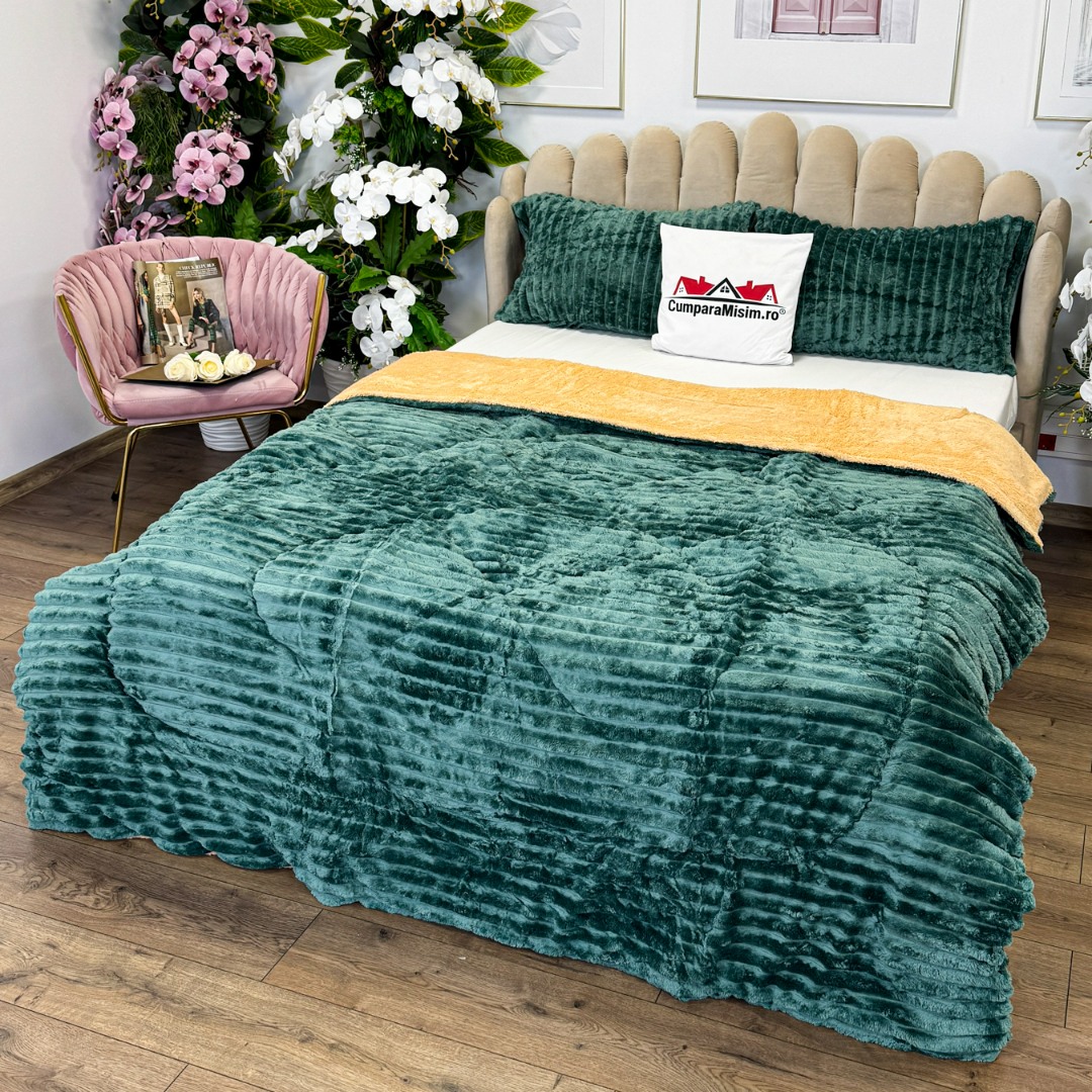 Pilota Groasa cu Fata din Blanita Artificiala de Iepure si Dos din Blanita Sherpa Maro, Umplutura Vatelina Siliconica, 200x230 cm + 2 fete de perna 50x70cm - Confort Termic Premium si Eleganta pentru Nopti Racoroase, Verde