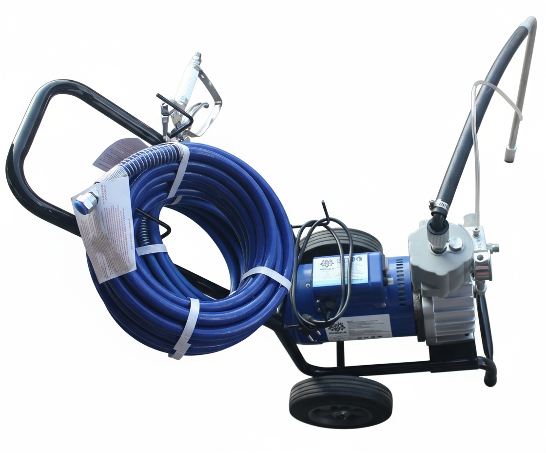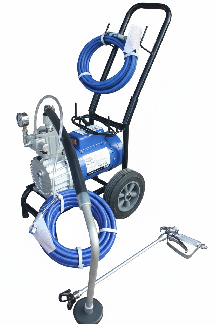 Pompa de vopsit si zugravit AIRLESS Diafragma Profesională cu Carucior - Complet Echipata - 1/4, 3kW, 5.5L/min - WP-APSD5 din gama de pompe de vopsit / zugravit Caracteristici Puternica - Versatila - Compacta - Sigura - Întreținere simplă. Pompa airless cu diafragma WP-APSD5 oferă un model regulat de pulverizare fără fluctuații. Completa cu: sistem aspiratie / recirculare, manometru, furtun, pistol, filtru pistol, baza suport duza, duza. Pentru : interior - exterior - clădiri industriale - construcții industriale - reamenajare Pompa de vopsit electrica cu membrana pentru vopsea spray cu emulsie vopsea anti-rugina, vopsea pentru podea, materiale pe baza de apa, lac, grund, vopsea lavabila, etc. Rezervor din aliaj de aluminiu cu disiparea căldurii - rezervorul mărit este echipat cu tablă de aluminiu cu disiparea căldurii, cu disipare multiplă a căldurii circulatorii, care rezistă continuu timp de 24 de ore fără a arde mașina. Cap de pompă durabil din aluminiu - Pompă cu diafragmă durabilă de înaltă presiune. Supapa de intrare și ieșire este realizată din material rezistent la uzură, ceea ce crește foarte mult gradul de rezistență la uzură și duritatea pieselor cheie și îmbunătățește calitatea mașinii. Atomizarea în formă de evantai economisește material. Pistol de pulverizare de înaltă presiune, atomizare uniformă și fină, efect de aderență mai bun. Pistoale duble cu suport dublu flux - funcționare cu 2 pistoale simultan, finalizați proiectul înainte de termen, lucrați în același timp, economisiți timp și efort, efect dublu Foarte Important! Înainte de punerea în funcțiune a pompei, înlocuiți dopul acesteia (șurubul negru) cu supapa de aerisire din setul de livrare. Avantaje Pulverizați uniform - Calitate bună a suprafeței, formarea peliculei de unică folosință, grosime uniformă de pulverizare, netedă, compactă Rată ridicată de utilizare a vopselei - Rata de utilizare a vopselei este peste 90%, economisind materii prime și reducând costurile. Design structural rezonabil - ușor de transportat, puternic și durabil. Eficiență ridicată de pulverizare - poate fi pulverizat cu aproximativ 4000 de metri pătrați pe zi, cu 30% mai rapid decât alte echipamente Ricoșarea vopselei de pe suprafețe este mică - condiții de lucru îmbunătățite, mai favorabile sănătății personalului din construcții Efect bun de pulverizare - pătrunderea puternică crește forța de lipire dintre acoperire și perete și rezolvă problemele de bule și fisurare a stratului de acoperire APLICAȚII - Se aplică în principal ingineriei de pulverizare a clădirilor rezidențiale mari, mijlocii și mici, clădirilor industriale comerciale, stropirii pereților interioare și exterioare, pulverizarea cu coperți rigide, inginerie anticoroziune, vopsire impermeabilă și ignifugă, inginerie industrială a podelelor, protecție de bază și așa mai departe. Specificatii tehnice WP-APSD5 220V pe suport cu sistem de aspiratie / recirculare Complet echipata - GATA DE LUCRU - 15 m furtun Prindere furtun /pistol: 1/4 Debit maxim 5.5 litri / minut - Duza max 0,031 (suporta 2 pistoale simultan) Randament maxim 4000m² / zi Motor de 3 kW - Presiune maxima 220 bar Greutate 40 kg Dimensiuni: 52x45x35cm Set-ul de livrare include Pistol de pulverizare cu apărătoare pentru vârf 1 buc Furtun de înaltă presiune (1/4’’ 15m) 1 buc Duza 1 buc Tub de aspirație 1 buc Manometru 1 buc Extensie (0,5 m) 1 buc Înainte de punerea în funcțiune a pompei, înlocuiți dopul (șurubul negru) cu valva respirabila din setul de livrare . Respectiva valva are o eticheta pe care este mentionat acest lucru.
