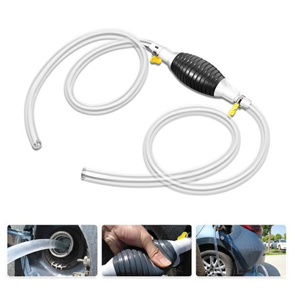 Pompa manuala pentru transfer lichide Pompa manuala tip sifon pentru lichide, este un accesoriu extrem de util pentru orice casa. Aceasta pompa poate fi folosita cu usurinta pentru diverse lichide precum: benzina, ulei, apa, bere, etc. De asemenea, poate fi folosita la schimbarea sau pomparea apei in acvarii mai mari. Instrumentul perfect pentru pomparea lichidelor Potrivita pentru combustibil, uleiuri si apa distilata Fixarea furtunului la pompa se face cu clemele speciale incluse in pachet Un accesoriu foarte util in orice casa sau atelier Pachetul contine: 1 x pompa manuala, 1 x furtun, 2 x cleme prindere. Un accesoriu manual pentru fiecare casa Pompa manuala tip sifon pentru lichide este un accesoriu extrem de util pentru orice casa. Aceasta pompa poate fi folosita cu usurinta pentru diverse lichide precum: benzina, ulei, apa, bere, etc. De asemenea, poate fi folosita la schimbarea sau pomparea apei in acvarii mai mari. Potrivita pentru toate tipurile de lichide Pompa manuala usoara si portabila ce poate fi folosita pentru tot felul de lichide precum: combustibul, ulei, apa, bere, etc Usor de folosit - Setul contine un furtun transparent din PVC, flexibil si durabil, rezistent la coroziune si permite accesul usor la containere. Furtunul se ataseaza la pompa cu clemele de prindere din pachet. Pachetul contine: 1 x pompa manuala, 1 x furtun, 2 x cleme prindere. Material: PVC Dimensiunea furtunului: lungime – 1 m, diametru exterior – 8 mm, grosime – 2 mm Atentionare: Aceasta pompa nu se foloseste pentru apa sarata sau alte lichide corozive. Lichidul pe care doriti sa il mutati trebuie sa fie pozitionat mai sus decat vasul in care mutati. Furtunul de absorbtie trebuie pozitionat in interiorul lichidului, nu doar la suprafata lichidului. Pompa este potrivita pentru vehiculele care nu au protectie impotriva furtului de combustibil. Important: 1. Inainte de utilizare taiati furtunul din pachet in 2 bucati, in functie de nevoile dumneavoastra; 2. Fiti atent la directia sagetii de pe pompa. Sageata trebuie sa fie orientata in directia de pompare a lichidului.