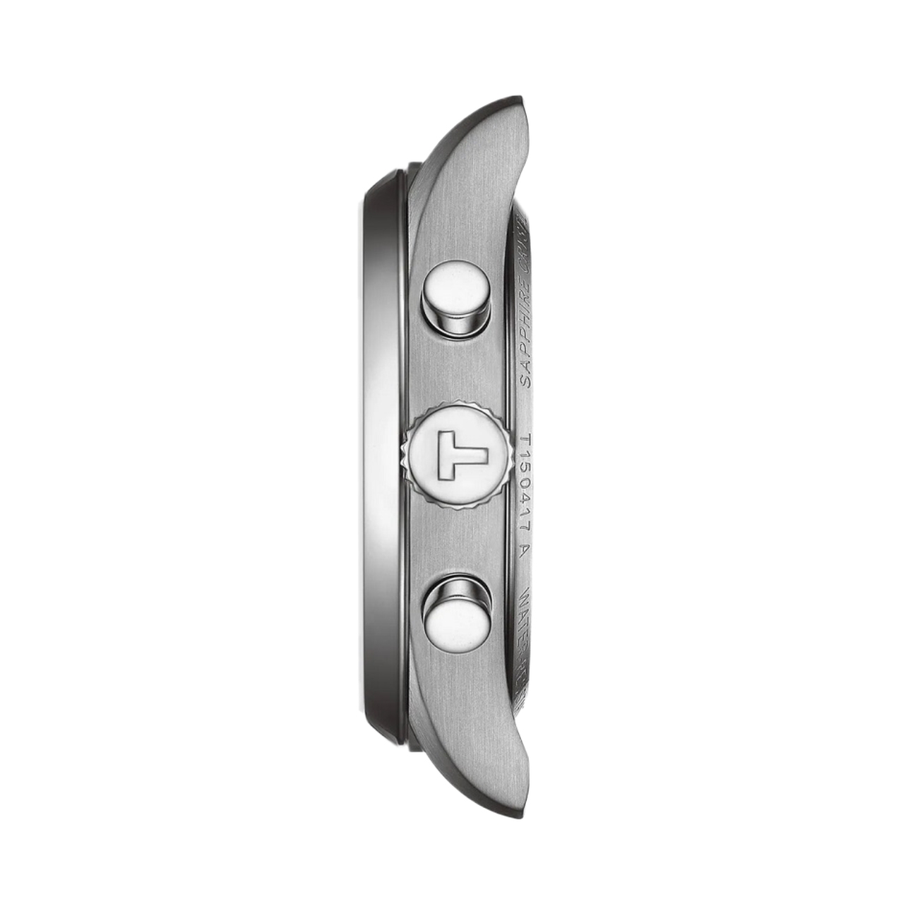 Ceasul Tissot T150.417.11.011.00 îmbină eleganța clasică cu performanța modernă, fiind o alegere perfectă pentru bărbatul activ care apreciază designul sofisticat și funcționalitatea de precizie. Carcasa și brățara din oțel inoxidabil conferă o prezență puternică și rafinată, în timp ce cadranul alb, contrastat de cele trei subcadrane albastre, adaugă un accent sportiv și contemporan. Aceste elemente oferă un echilibru vizual perfect între eleganță și dinamism, specific stilului Tissot. Ceasul este echipat cu un mecanism Quartz elvețian de înaltă precizie, care asigură o cronometrare exactă și o funcționare fiabilă. Funcția de cronograf permite măsurarea timpului cu o acuratețe remarcabilă, iar fereastra de dată poziționată la ora 4 adaugă un plus de utilitate. Sticla safir, extrem de rezistentă la zgârieturi, protejează cadranul, iar rezistența la apă de până la 100 m (10 bar) face din acest model un partener de încredere în activitățile de zi cu zi sau în momentele de aventură.