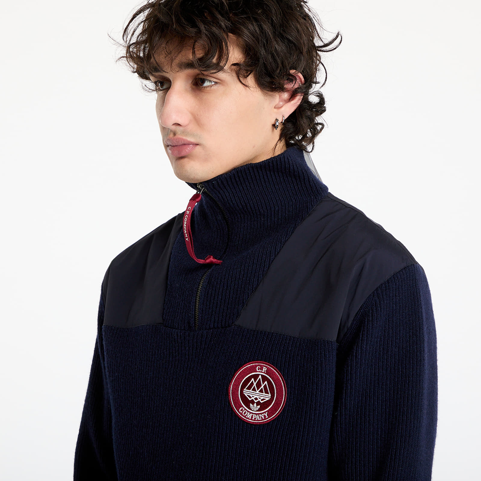 Pulover adidas Spezial x C.P. Company Half-Zip Hooded Night Navy pentru 1699 lei. Cod produs: JE8672, material: 80% Lână / 20% Poliamidă reciclată ♻