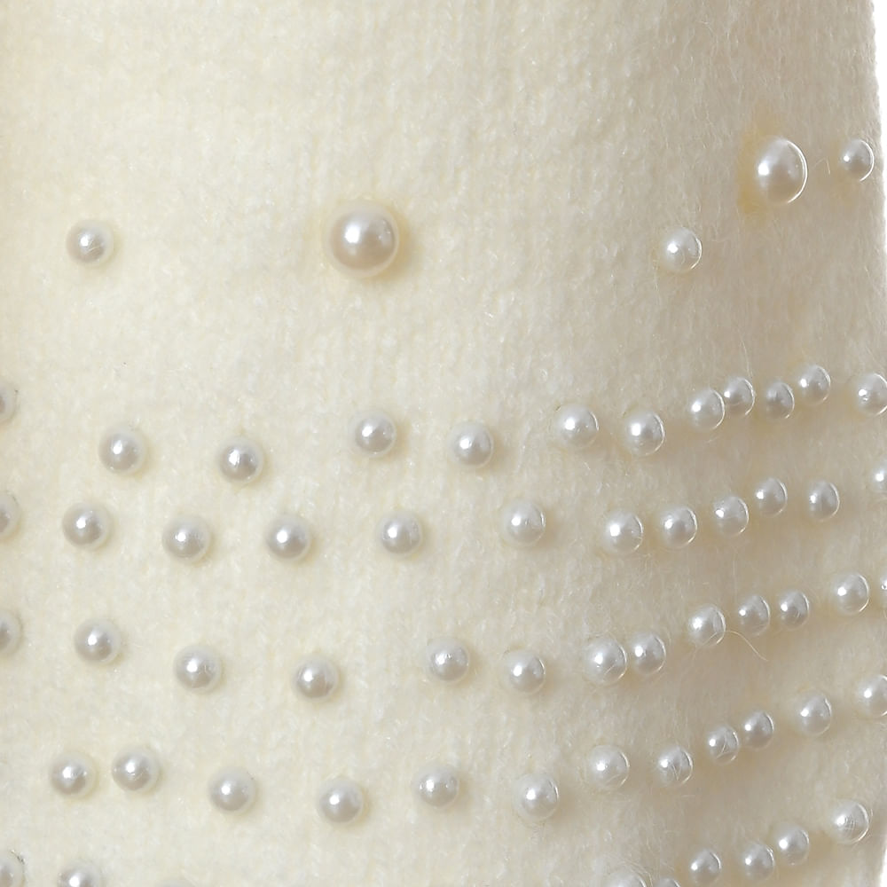 Pulover alb elegant cu perle aplicate pe maneci