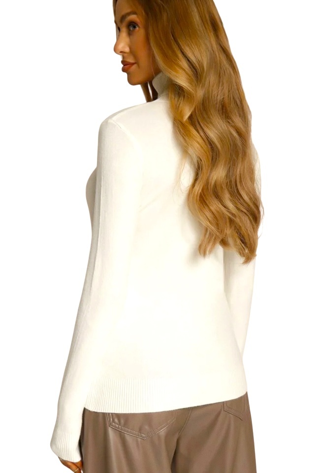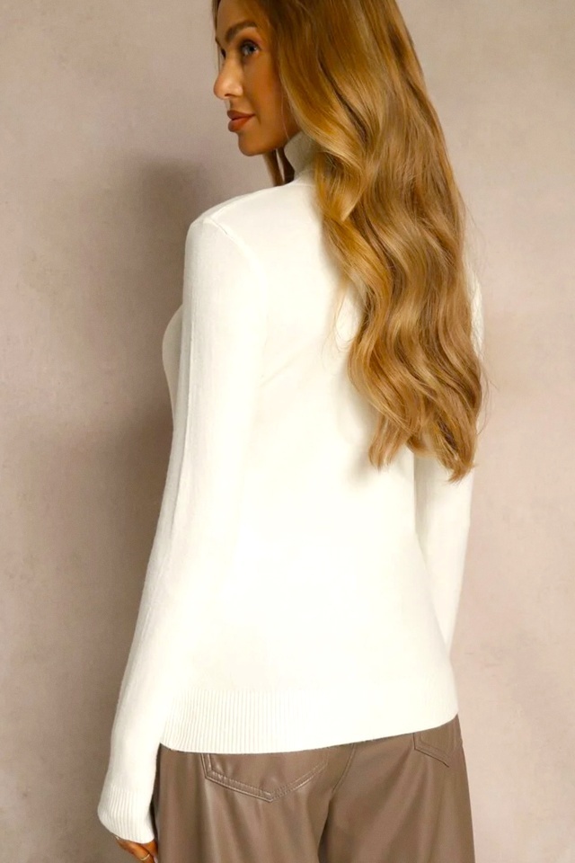 Pulover dama din tricot ARYA, cu guler rulat, ALB, Marime S/M