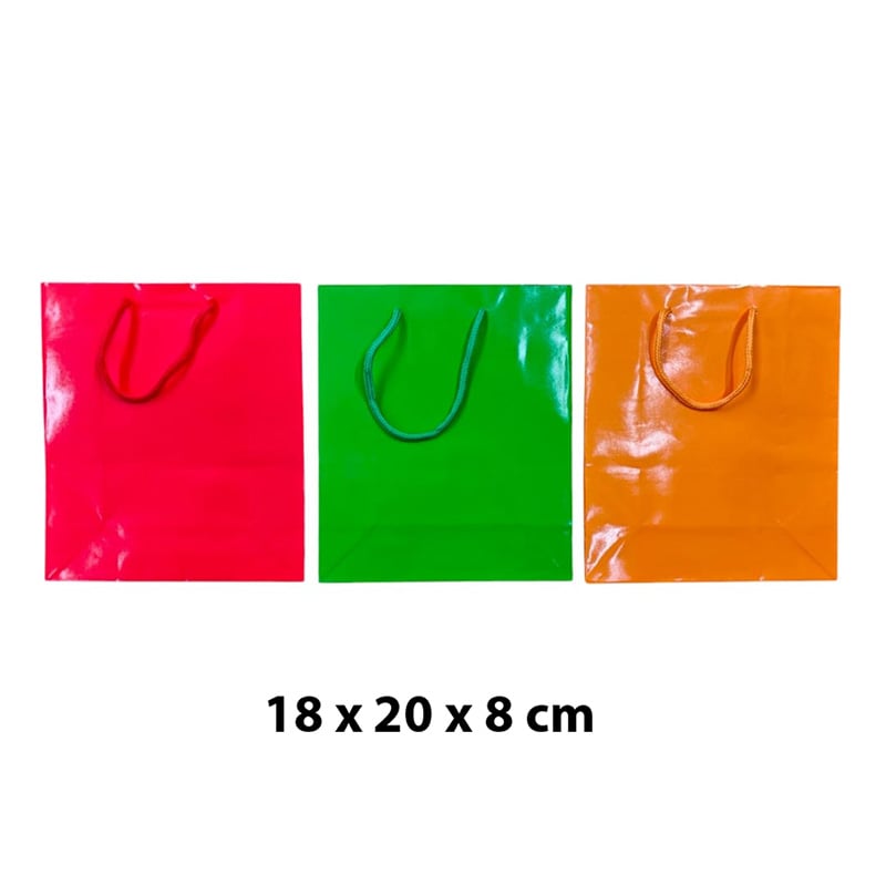 PUNGI DIN HARTIE CERATA, UNI, dimensiune 18x20x8 cm, diverse culori combinate intr-un set de 12 bucati