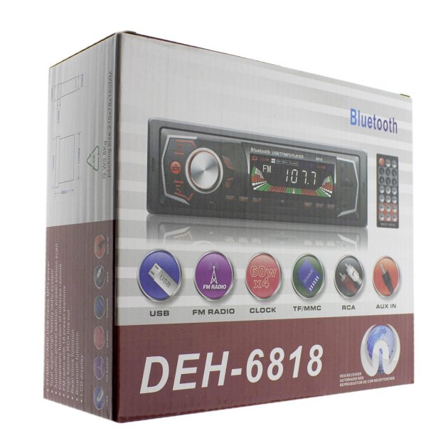Radio MP3 player auto DEH-6818, Bluetooth, telecomanda inclusa Playerul auto dispune de conectare prin Bluetooth, port USB, SD Card si Aux, si de Radio FM. Afisajul LCD reda o varietate de culori impresionante, ora exacta si modul pe care este setat aparatul, iar pentru o utilizare cat mai facila si eficienta, acest dispozitiv vine insotit si de telecomanda. Sistem electronic de reglare Functie Bluetooth: 8-10 metri Stereo Radio FM: 87.5 MHz - 108 MHz Format Suport MP3 Port USB/TF/MMC Afisaj orar in timp real Display spectru larg Control audio electronic Iesire RCA/AUX Putere de iesire: 240W (4 x 60W) Tensiune continua: 12 V Format audio: MP3/WMA/WAV Dimensiuni: 18.8 x 12.8 x 5 cm Continut pachet: Radio auto Cabluri conectare Telecomanda