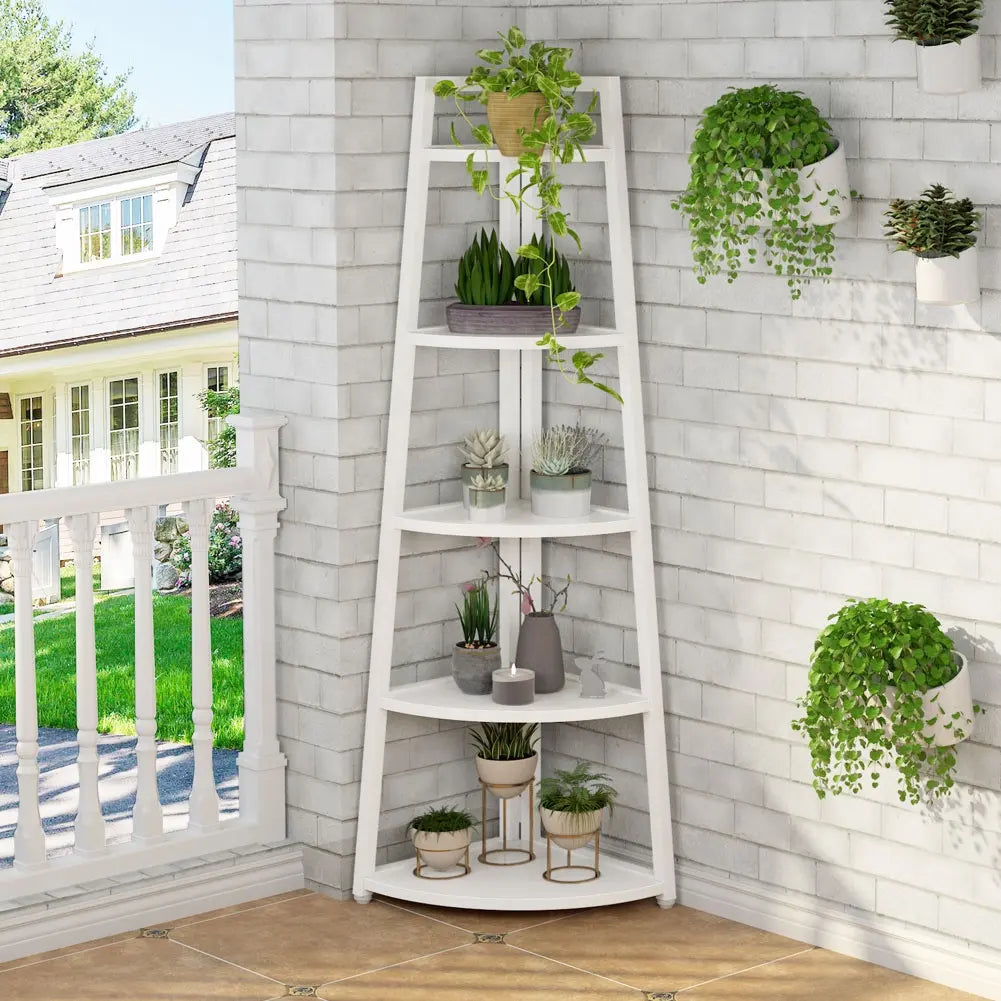 Raft de colt cu 5 polite, Alb, 106 cm Etajera de colt cu rafturi pentru carti sau ghivece Raft de depozitare cu 5 etaje ideal pentru carti, potrivit pentru a fi plasat pe podea, servind ca biblioteca sau cabinet de depozitare pentru casa. Poate fi folosit si ca suport pentru plante,raft de depozitare/afisare in colt, biblioteca/raft pentru carti in colt. Raftul are un design cu 5 etaje in forma de scara, oferind spatiu generos de depozitare si expunere pentru carti, plante, obiecte decorative si altele. Designul sau de inspiratie industriala adauga o nota contemporana in orice camera. Raftul vine in finisaj alb,oferind un aspect curat si elegant care completeaza diferite stiluri de interior si combinatii de culori. Datorita designului sau de colt, acest raft se potriveste perfect in colturi, fiind ideal pentru spatii mici sau incomode. Poate fi utilizat in camere de zi, bucatarii, terase, birouri de acasa sau in orice alta zona unde este necesar spatiu suplimentar de depozitare sau expunere. Date tehnice: Dimensiune: 30 x 106 cm Material: PVC Numar polite: 5 Culoare: alb
