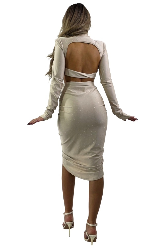 Fiecare detaliu reflectă o femeie sigură de sine. NYVARA – strălucirea cristalelor , formă desăvârșită. Rochia NYVARA este o piesă statement care îmbină senzualitatea croielii mulate cu eleganța detaliilor atent lucrate. Construită pe o linie asimetrica, cu crapătură frontală, această rochie subliniază armonios formele feminine, oferind libertate de mișcare și o prezență spectaculoasă. Zona decupată în talie evidențiază silueta și creează un contrast subtil între liniile fluide ale drapajelor și structura perfect conturată a corpului. Drapajele (încrețiturile) laterale amplifică efectul de modelare, aducând un plus de echilibru vizual și rafinament. Detaliile precum gulerul înalt, spatele gol, umerii buretați detașabili și cupele buretate nedetașabile oferă stabilitate și structură croielii, transformând această rochie într-o alegere impecabilă pentru evenimente de seară sau apariții în care încrederea contează. Întreaga suprafață este decorată cu pietre artizanale fine, aplicate cu precizie, ce creează o strălucire discretă și elegantă, fără a încărca designul. NYVARA este expresia pură a feminității moderne – o piesă pentru femeia care poartă luxul ca pe o extensie a propriei atitudini. Caracteristici rochie: ✅ - croiala medie, asimetrica, cu fronseuri si crapatura in fata - tipar cu maneca lunga - cu guler usor inalt si detalii artizanale din cristale, pe toata suprafata rochiei - fara sistem de inchidere si lungime totala a rochitei: 120 cm ; - cupe buretate nedetasabile - umeri buretati detasabili pentru o liniatura eleganta Compozitie material: 88% nylon, 12% elastan; MADE IN ITALY! Marimea universala S/M este compatibila cu masura S sau M. Eticheta produsului conține informații esențiale referitoare la întreținerea și spălarea corectă a articolelor vestimentare. Imaginile Fashionforyou au caracter informativ, iar nuanta, tonul si intensitatea culorii pot varia in functie de monitor/ecran telefon.