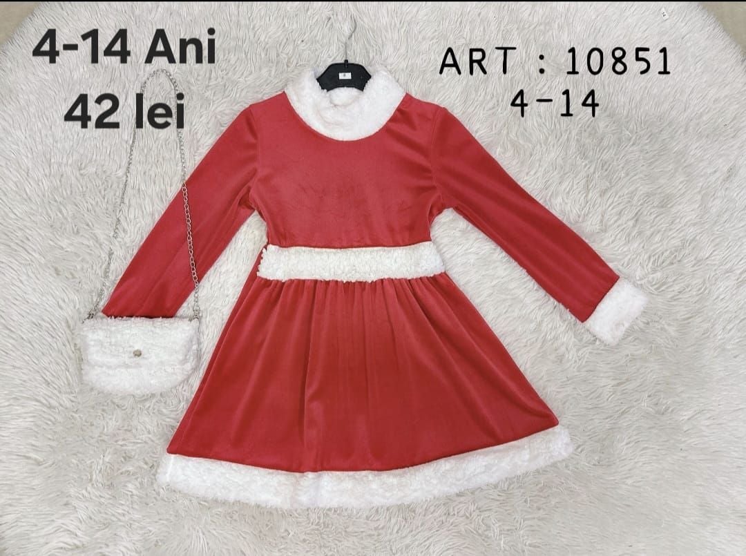 Rochie Engros pentru fete, model de Craciun, detalii cu blanita