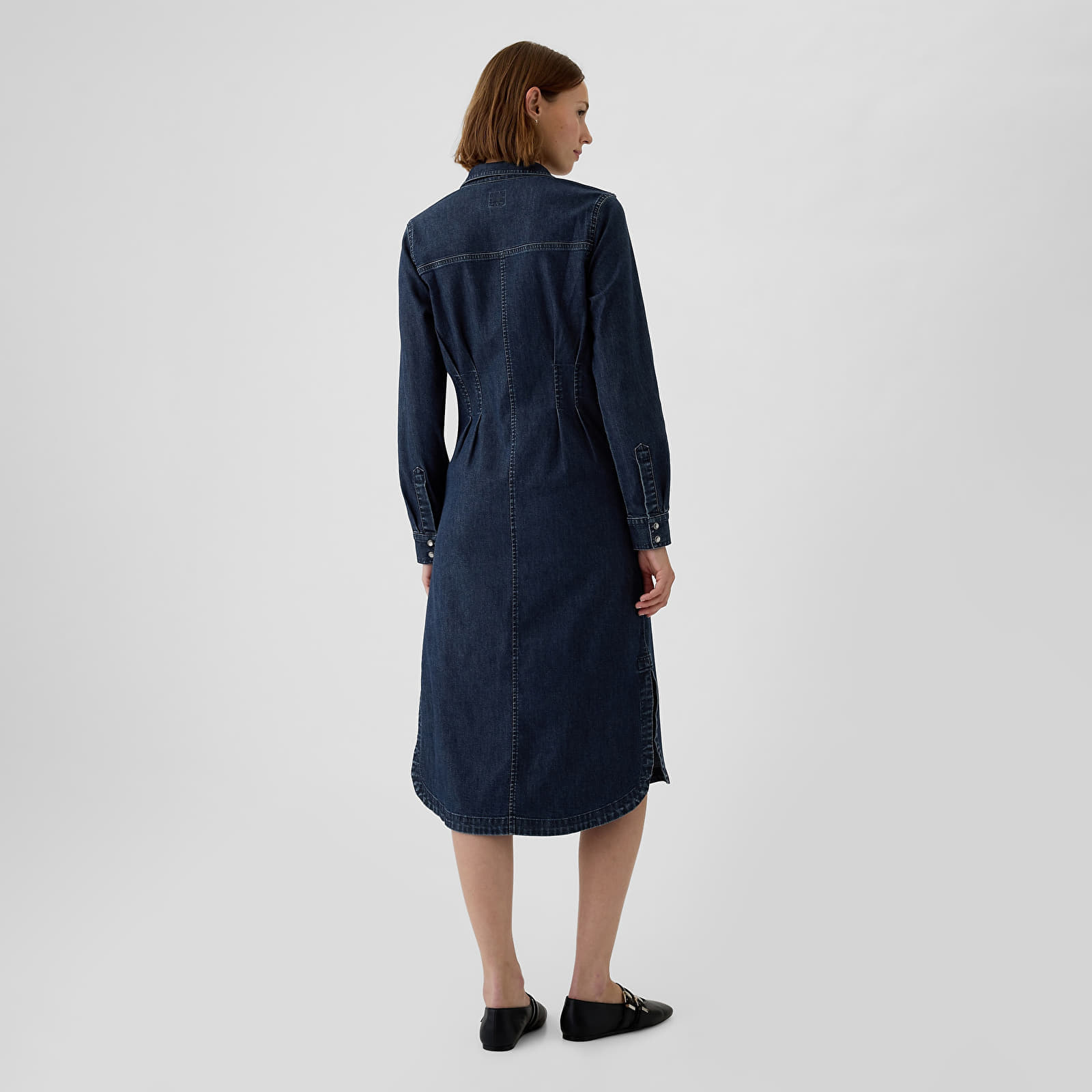 Rochie GAP Denim Dress Dark Wash pentru 489 lei. Cod produs: 516975-00, material: 77% Bumbac / 1% Elastan / 17% Poliester / 5% Poliester reciclat
