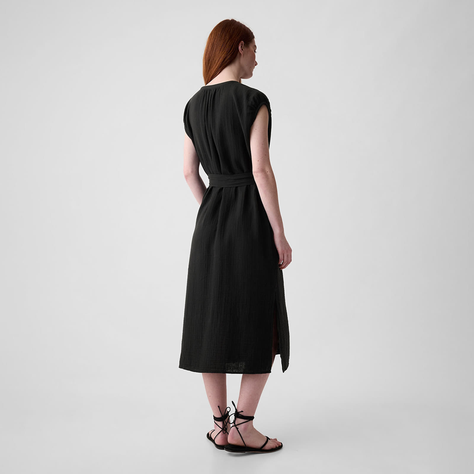 Rochie GAP Shortsleeve Gauze Tie Waist Button Down Midi Dress Black pentru 439 lei. Cod produs: 857632-02, material: 100% Bumbac