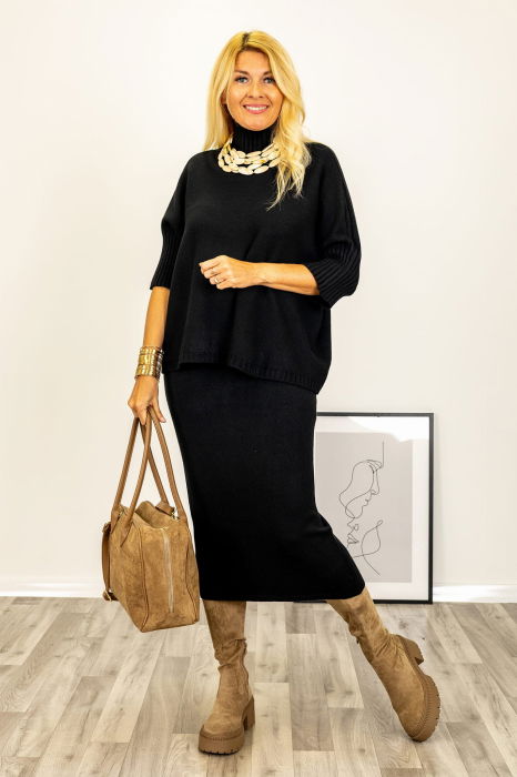 Are maneci scurte Decolteu rotund Rochia este ampla la baza Rochiile sunt talie unica si se potrivesc pentru masurile L, XL, XXL Material: 70% vascoza, 30% in Descriere dimensiuni: Masura Umeri (cm) Bust(cm) Lungime(cm) S M 35 100 124 L XL 39 112 128
