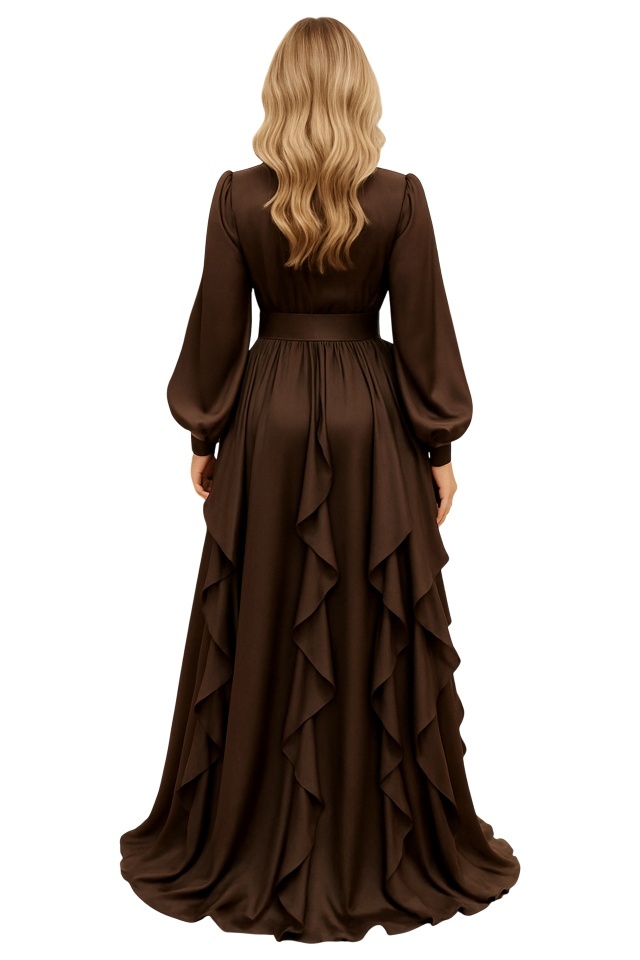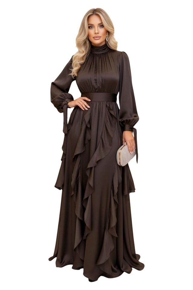 Rochie pentru evenimente Marivelle, cu volane si insertii lurex, Maro Ciocolata, Marime S/M