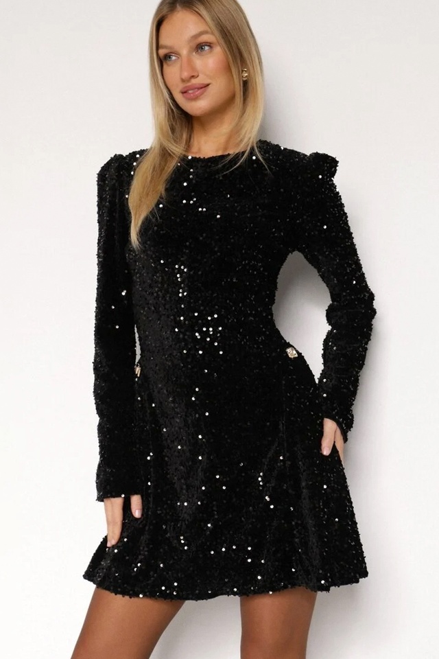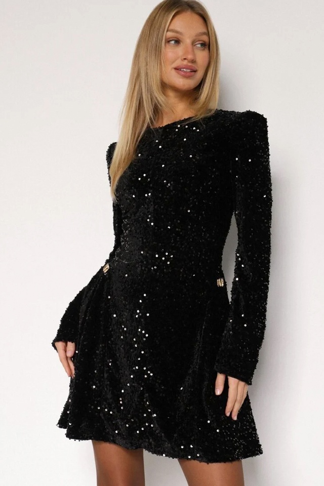 Glamour modern, silueta impecabila, prezenta de neuitat. O rochie care nu doar se vede — se simte. Rochia mini cu paiete este o piesa spectaculoasa, special conceputa pentru aparitii memorabile. Croiala scurta si usor evazata pune in valoare picioarele, pastrand totodata un aer elegant si echilibrat. Materialul acoperit integral cu paiete creeaza un joc spectaculos de lumini la fiecare miscare, transformand rochia intr-o alegere ideala pentru petreceri, evenimente, seri festive sau ocazii speciale. Manecile lungi confera un contrast placut intre croiul mini si eleganta liniilor verticale, adaugand un plus de sofisticare. Linia umerilor este bine definita, creand o silueta moderna si feminina, cu un efect vizual subtil sculptat. Accesorizata cu pantofi stiletto si o geanta eleganta, rochia devine rapid una dintre cele mai puternice piese ale garderobei tale pentru evenimente. Caracteristici rochie: ✅ - material acoperit integral cu paiete - croi scurt, usor evazat, ideal pentru ocazii - maneci lungi, elegante, cu linie feminina, cambrata - detalii decorative aurii in laterale - umeri bine conturati, buretati pentru efect modern si sofisticat - stralucire intensa la miscare - perfecta pentru petreceri, revelion, evenimente si seri speciale - se asorteaza cu pantofi stiletto, sandale sau ghete elegante Compozitie material: 95% poliester, 5% elastan; Marimea universala S/M este compatibila cu masura S sau M. Eticheta produsului conține informații esențiale referitoare la întreținerea și spălarea corectă a articolelor vestimentare. Imaginile Fashionforyou au caracter informativ, iar nuanta, tonul si intensitatea culorii pot varia in functie de monitor/ecran telefon.