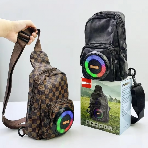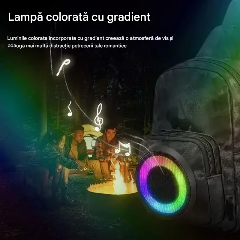 Rucsac cu boxa portabila TWS Bluetooth 5.0, Luminite RGB, FM, TWS si Power Bank Design Urban si Confortabil - Acest rucsac modern imbina perfect stilul urban cu functionalitatea. Designul compact si usor, ce se poarta pe un umar, il face ideal pentru plimbari, calatorii, parc sau orice activitate in aer liber. Materialul rezistent cu imprimeu tip camuflaj ofera durabilitate si un aspect cool. Experienta Muzicala Completa - Boxa integrata in partea frontala ofera sunet clar si puternic, cu conectivitate Bluetooth 5.0 pentru redare wireless stabila. Sistemul TWS permite conectarea cu o alta boxa similara pentru un sunet stereo real. Luminile LED RGB se sincronizeaza cu ritmul muzicii, transformand orice iesire intr-o mica petrecere. Functii Multiple si Utile - Pe langa redarea muzicii, rucsacul este echipat cu radio FM si functie power bank, astfel incat iti poti incarca telefonul oricand. Portul USB Type-C asigura incarcare rapida si usoara, pentru ca muzica sa nu se opreasca atunci cand ai nevoie de ea. Continutul Pachetului - Rucsacul vine complet echipat pentru a fi folosit imediat. Include boxa portabila integrata, cablu USB Type-C pentru incarcare si manual de utilizare. Dimensiunile compacte (17 x 10.5 x 19.5 cm) si greutatea redusa de doar 574 g il fac usor de purtat oriunde.