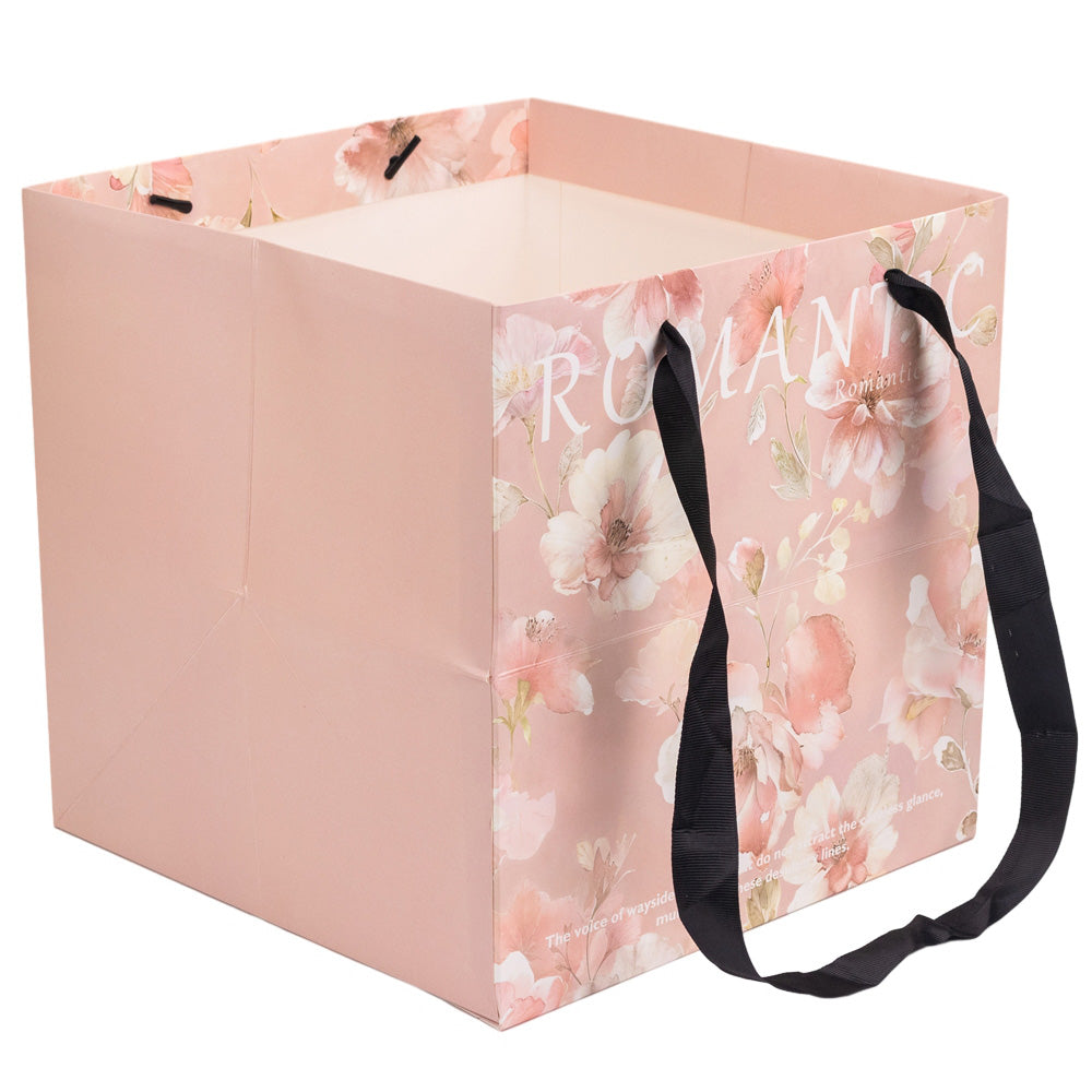 Sacoșă pătrată cu mesaj și mâner textil - roz, aduce un strop de culoare și personalitate în orice ocazie. Cu un design modern și un mesaj inspirator, este alegerea perfectă pentru a oferi cadouri memorabile sau pentru a-ți expune propriile creații cu stil.