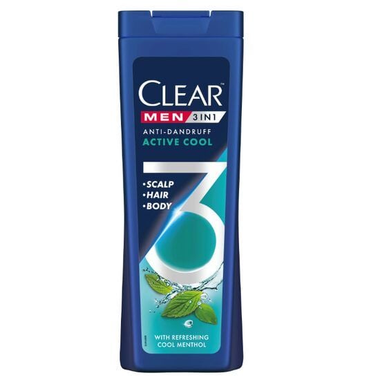 Sampon Clear 3 in 1 Active Cool, 360 mlNoul Clear pentru barbati 3 in 1 sampon antimatreata, balsam si gel de dus, cu o explozie racoritoare de mentol si agent de hidratare, ce ofera protectie de pana la 100% impotriva matretii. Pentru o senzatie de prospetime din cap pana in picioare, ce dureaza intreaga zi!