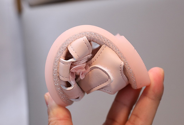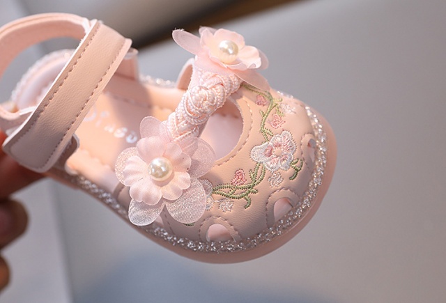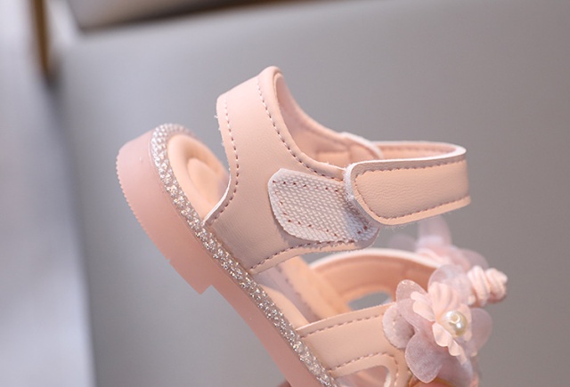 Marimi: 21 (13,5 cm lungime talpa interior) 22 (14 cm lungime talpa interior) 23 (14,5 cm lungime talpa interior) 24 (15 cm lungime talpa interior) 25 (15,5 cm lungime talpa interior) Culoare: roz Material: piele ecologica Inchidere: bareta cu arici Sandale elegante pentru fetite, in nuante pastel de roz, decorate cu flori 3D, perle si broderie delicata. Designul rafinat si feminin este perfect pentru ocazii speciale, petreceri sau tinute de sarbatoare. Realizate din materiale moi si flexibile, aceste sandale ofera confort si sustinere pentru piciorusele delicate. Talpa este usoara si usor texturata pentru stabilitate, iar marginea decorativa cu sclipici adauga un plus de stralucire. Inchiderea cu arici (velcro) asigura o fixare sigura si o incaltare rapida.