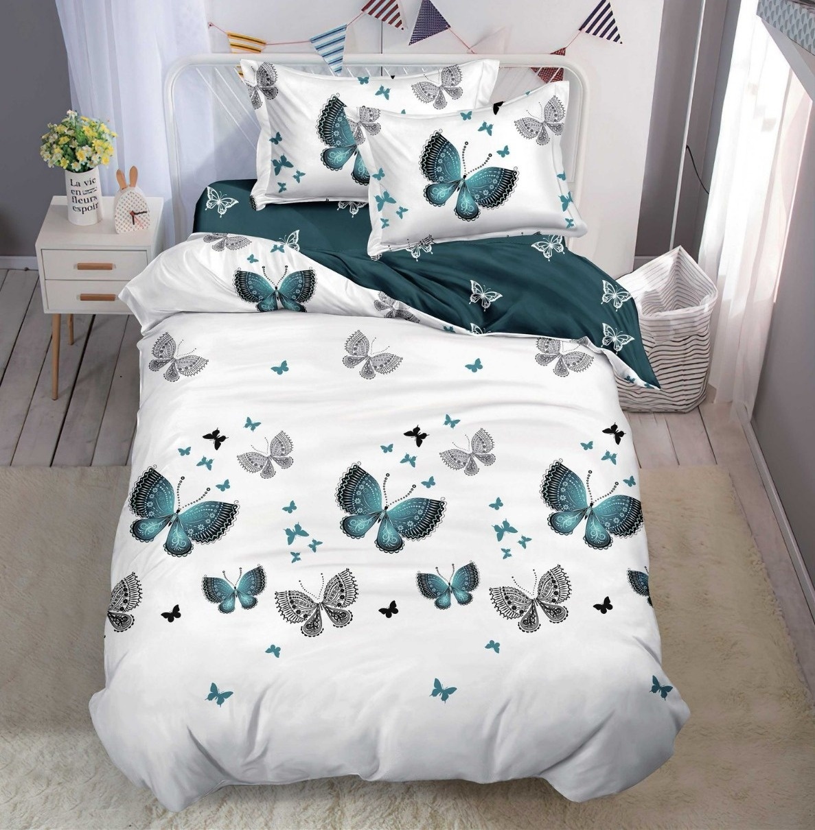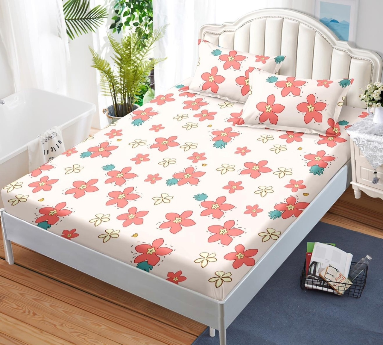 Cearsaf de pat cu elastic si 2 fete de perna Garden 180x200 cm (Finet)