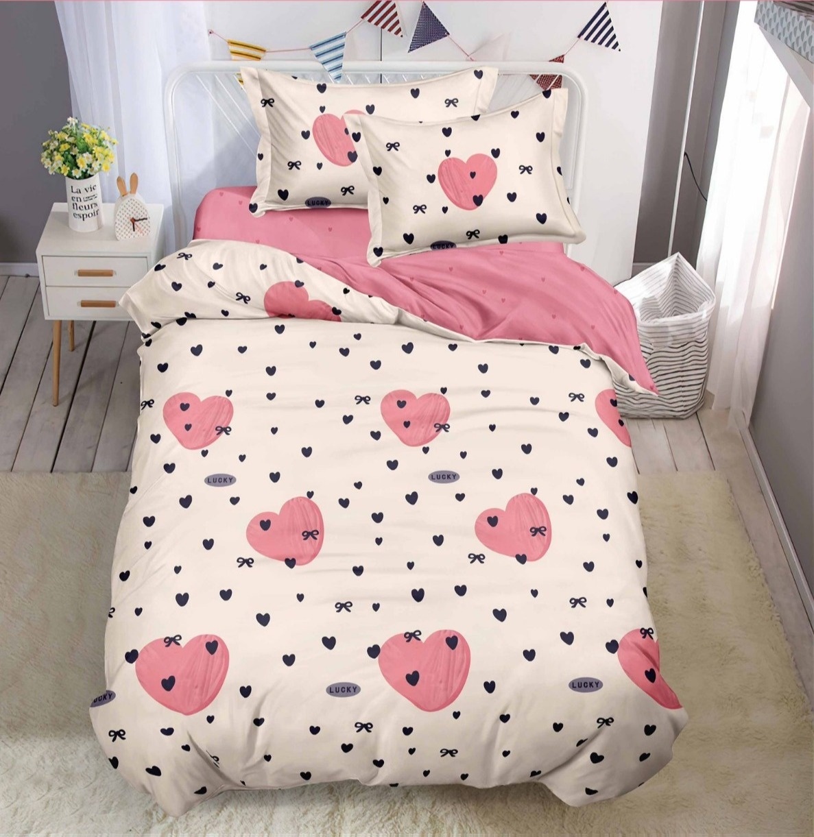 Lenjerie 1 Persoana cu elastic 140x200 Heart Spot (Finet)