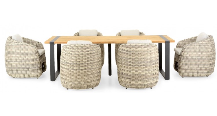 Articol: Scaun pentru exterior Dimensiuni: L.74 x l.78 x H.80 cm Material: Aluminiu, fibre sintetice / Tesatura olefin Culoare: Gri / Alb / Gri Protectie UV: Da Finisaj structura: mat Structura Material: Aluminiu, fibre sintetice Culoare: Gri, finisaj mat Tip structura: Baza Sezut Material: Aluminiu, fibre sintetice / Tesatura olefin Culoare sezut: Alb Spatar Material: Aluminiu, fibre sintetice / Tesatura olefin Culoare spatar: Alb Brate Brate incluse: Da Culoare brate: Gri Material brate: Aluminiu, fibre sintetice Scaun Cancun Lasati-va sedusi de confortul pe care il ofera scaunul din gama Cancun si bucurati-va de sederi relaxante acasa. Acest scaun este realizat din structura de aluminiu vopsita in camp electrostatic si impletita cu fibre sintetice de 20 mm cu protectie UV. Include perne de 20 cm grosime din tesatura Olefin, cu protectie impotriva umezelii si a decolorarii. Designul este unul frumos acesta contribuind la decorarea unui living intr-un mod elegant. Beneficiati de tot confortul visat prin intermediul scaunului Cancun si folositi-l acolo unde doriti.